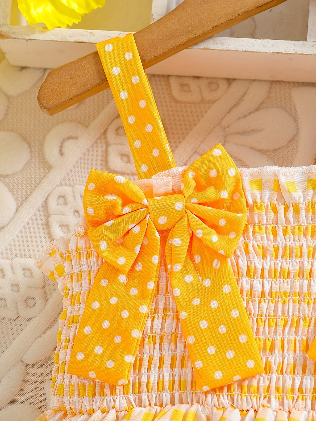 Robe d’été bébé fille à carreaux jaunes – Bretelles à nœuds & motif ananas – 6 mois à 3 ans