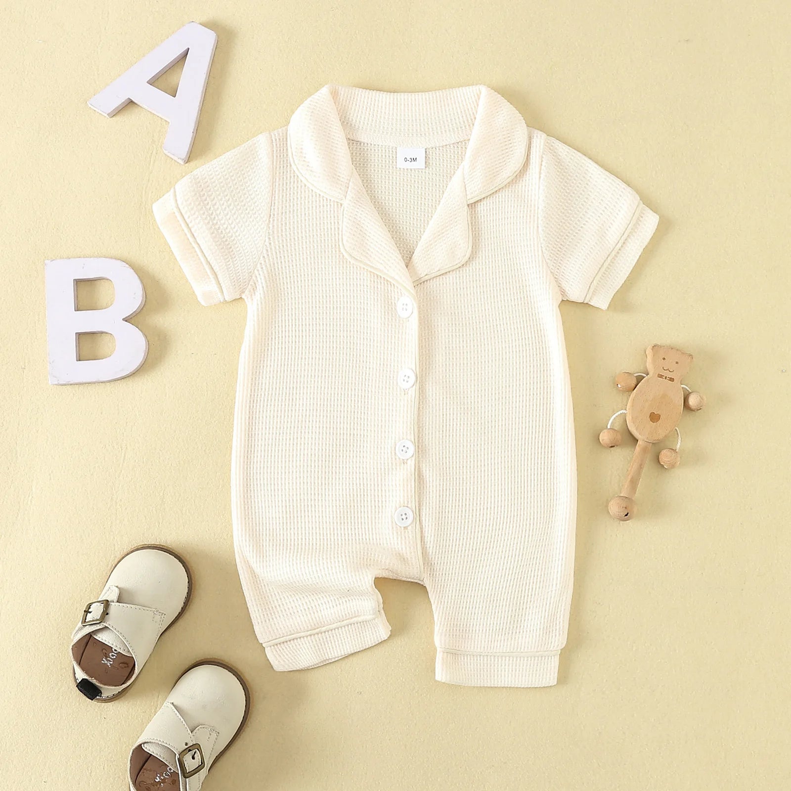 Barboteuse bébé unisexe à manches courtes – Pyjama confortable (0–24 mois)