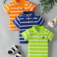Cet ensemble 3 pièces comprend de jolis polos rayés légers, parfaits pour les journées chaudes, les sorties en famille ou les occasions décontractées.