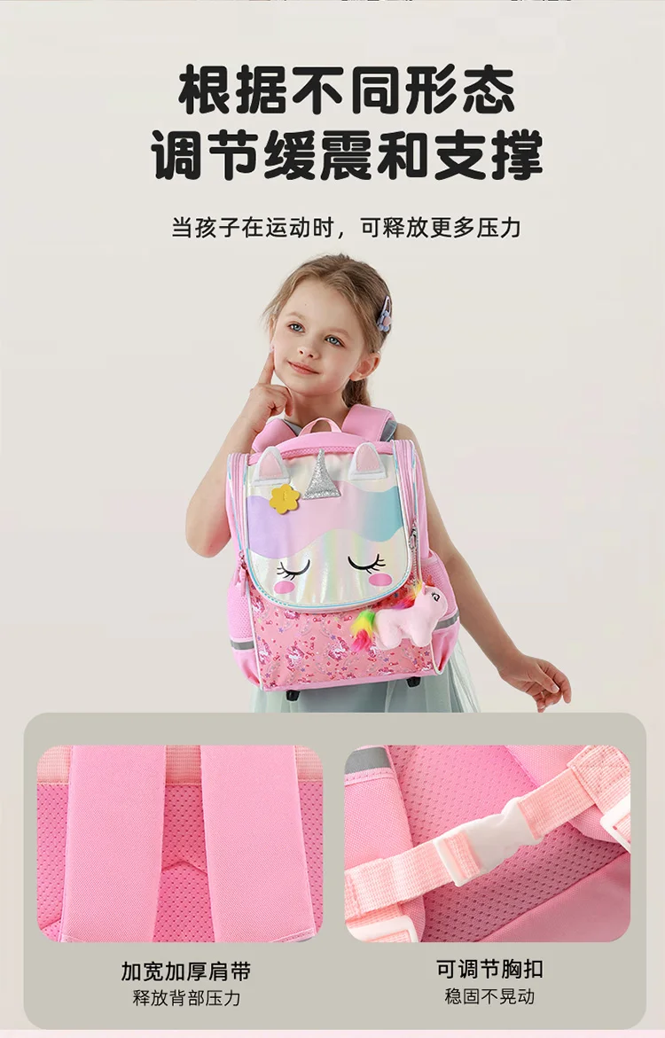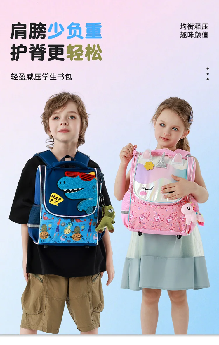 Ce sac à dos scolaire pour enfants est conçu pour accompagner les élèves du primaire au quotidien. Son design ludique licorne et dinosaure plaît aux enfants, tandis que sa conception ergonomique rassure les parents.