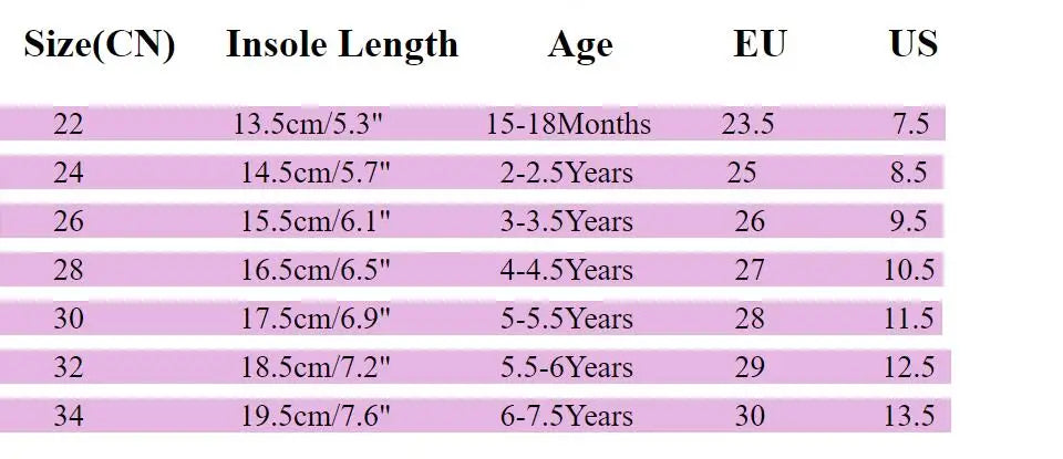 Shoes Length: 13.5cm,14cm,14.5cm,15cm,16cm,17cm,17.5cm,18cm,18.5cm,19cm,19.5cm