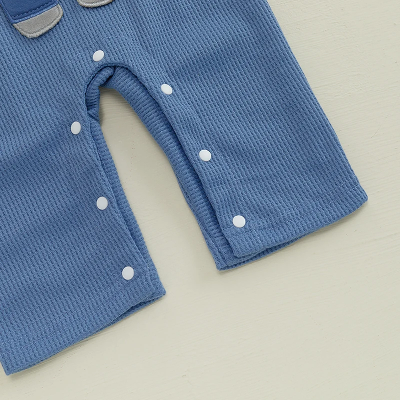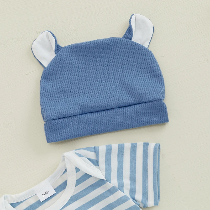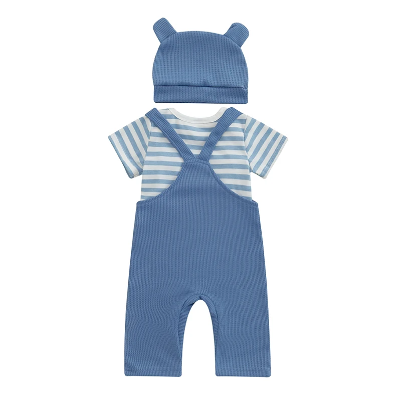 Ensemble Bébé 3 Pièces Élégance Éléphant – Barboteuse Rayée, Salopette et Bonnet (0-18 mois)