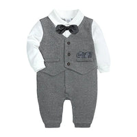 Costume formel pour nouveau-né garçon, barboteuse à manches longues, combinaison avec nœud papillon, tenue de smoking, vêtements pour bébés de 0 à 24 mois, cadeau