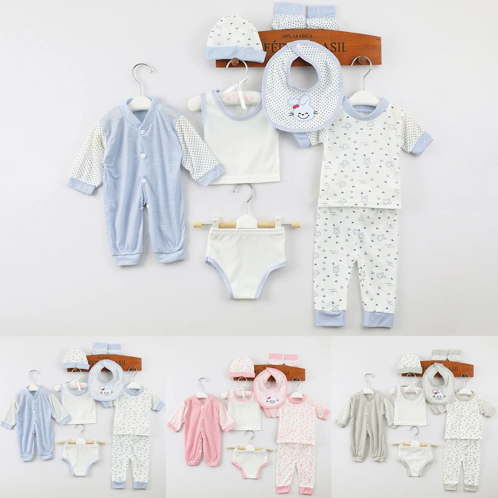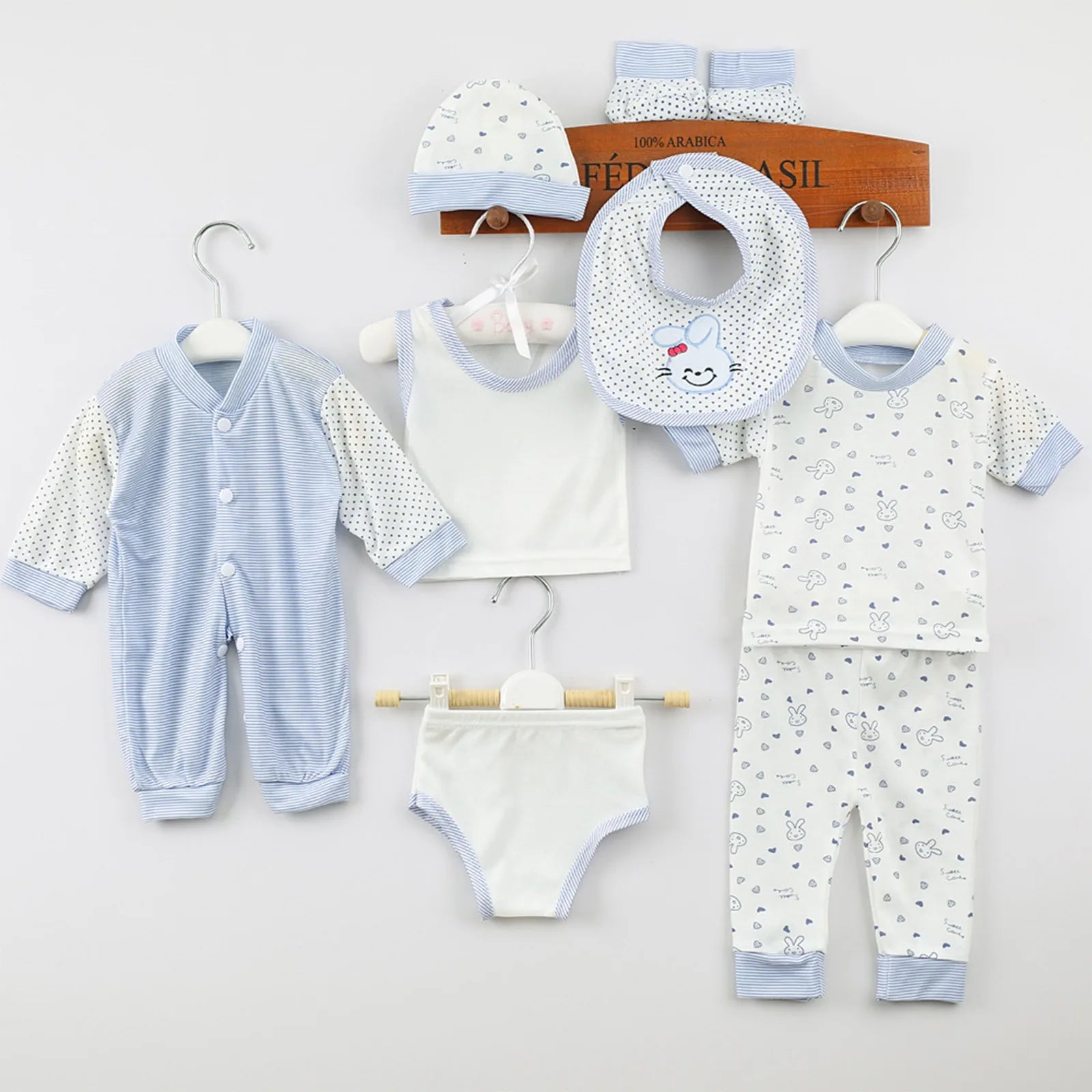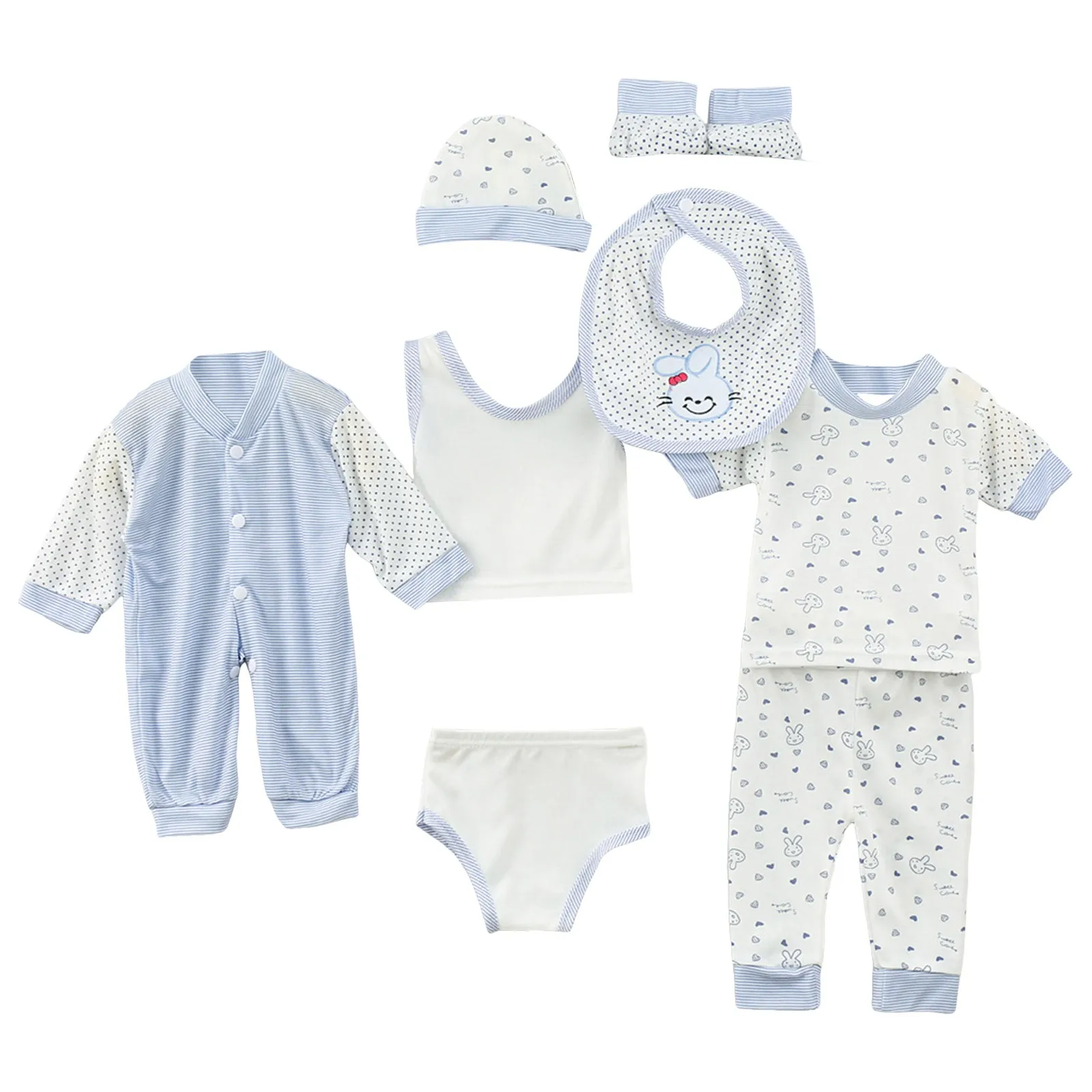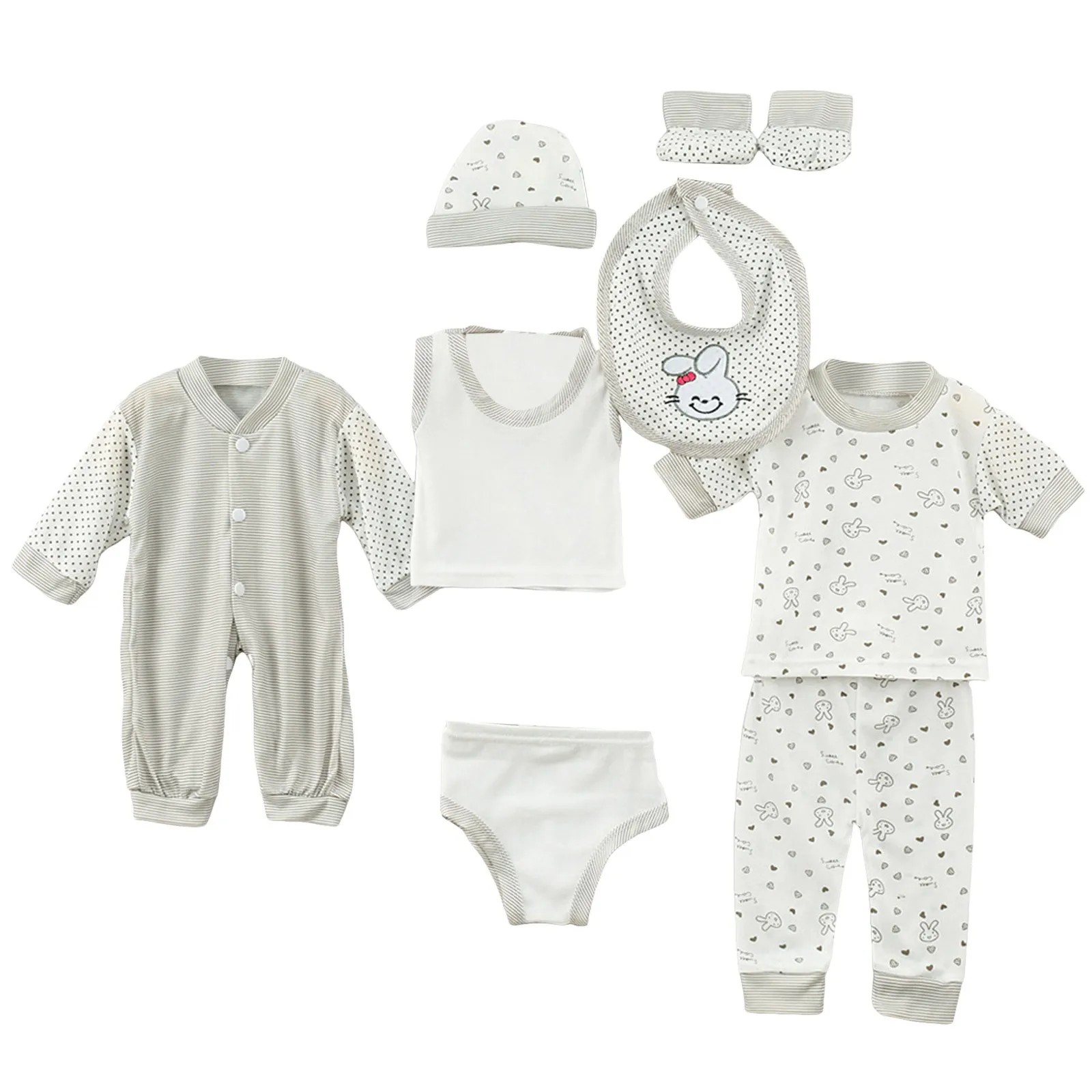 Ensemble de 8 hauts + chapeau + pantalon + bavoir + chaussette + barboteuse pour nouveau-né garçon fille