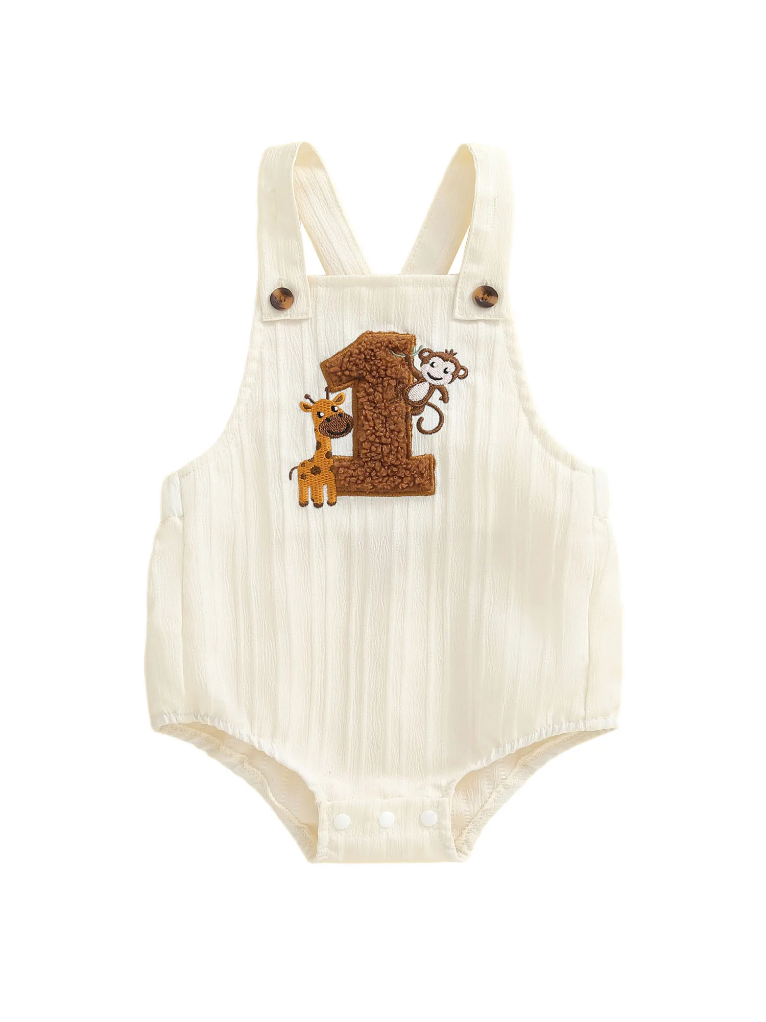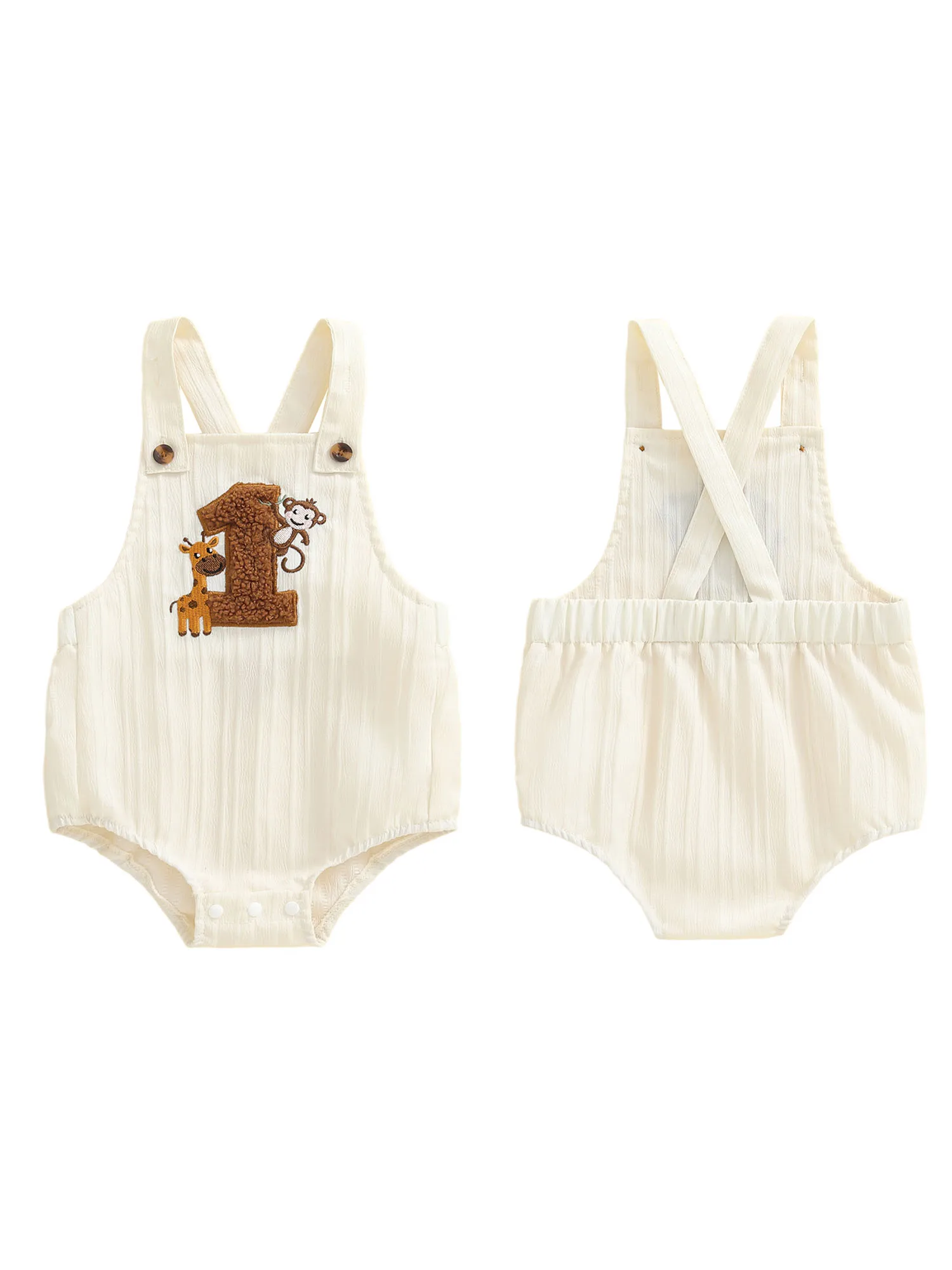 Barboteuse bébé ours “1 an” – Salopette douce unisexe (6–18 mois)