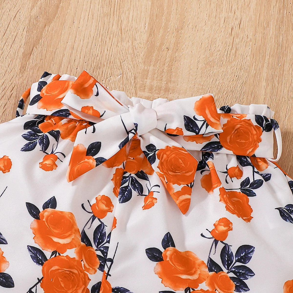 The orange flower print shorts add a touch of femininity and charm, making this set a standout choice for your little girl.