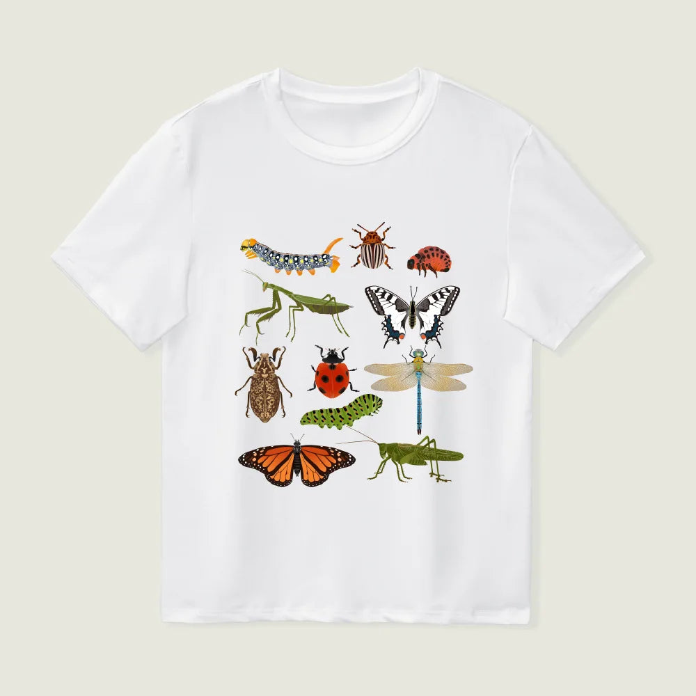 Girls Short-Sleeve T-Shirt Insect Science Print Casual Crew-Neck Children's Summer Wear Kids' Clothes