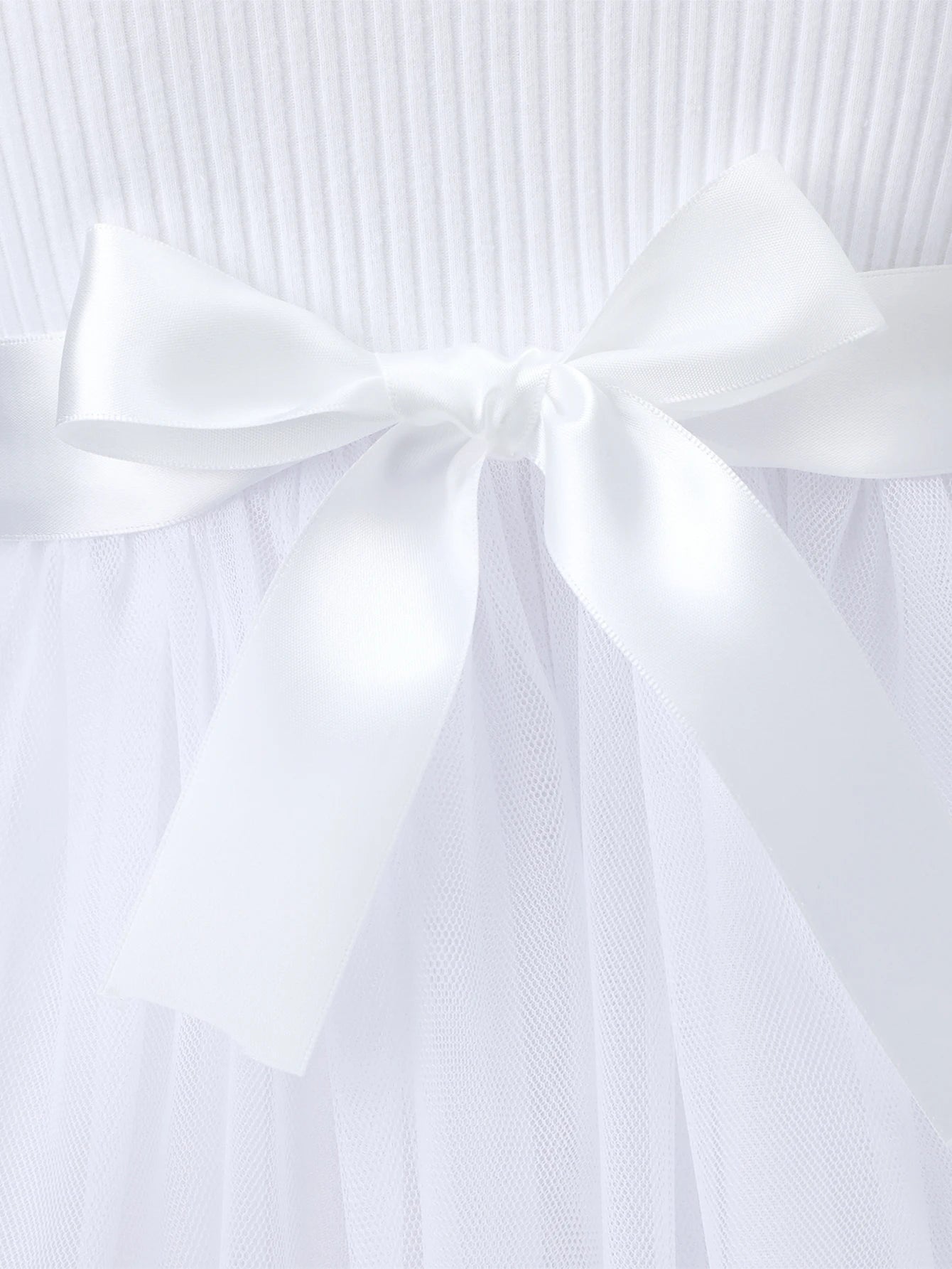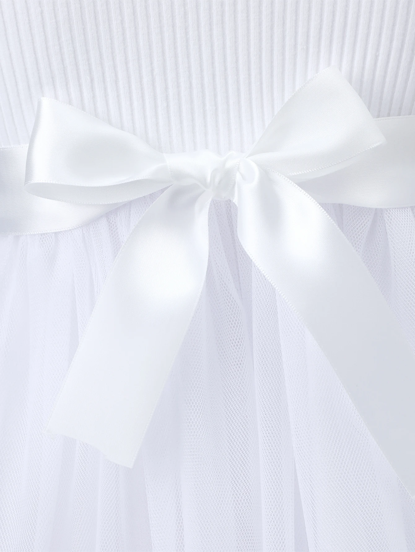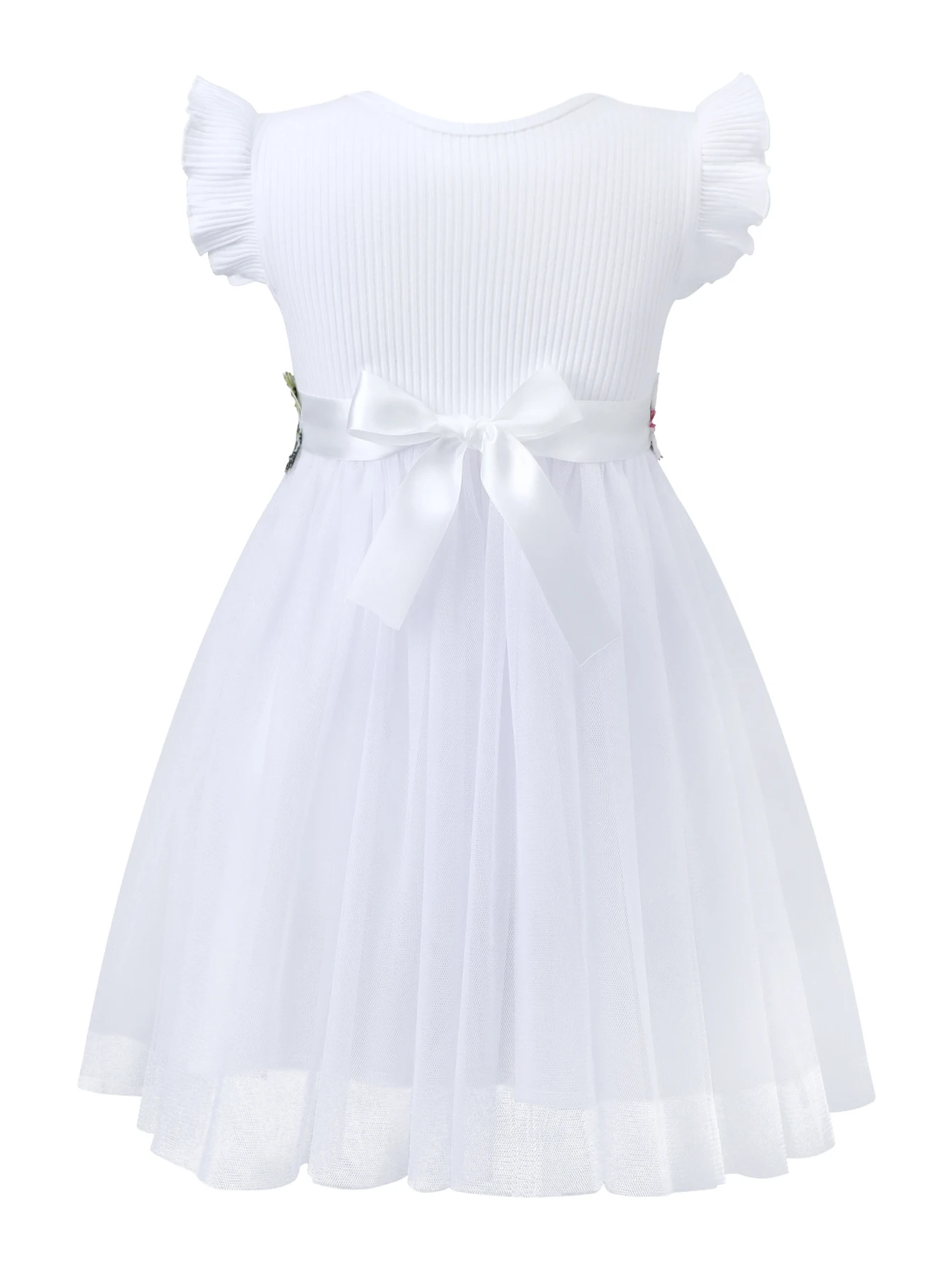 Robe blanche élégante pour fille – Nœud à la taille & dentelle florale