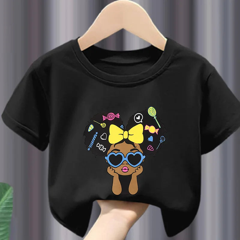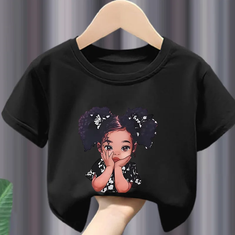 Girls' Summer Crew-neck Short-sleeved Top New Black Girls' Print Top Kids Clothes Boys Girls Clothes