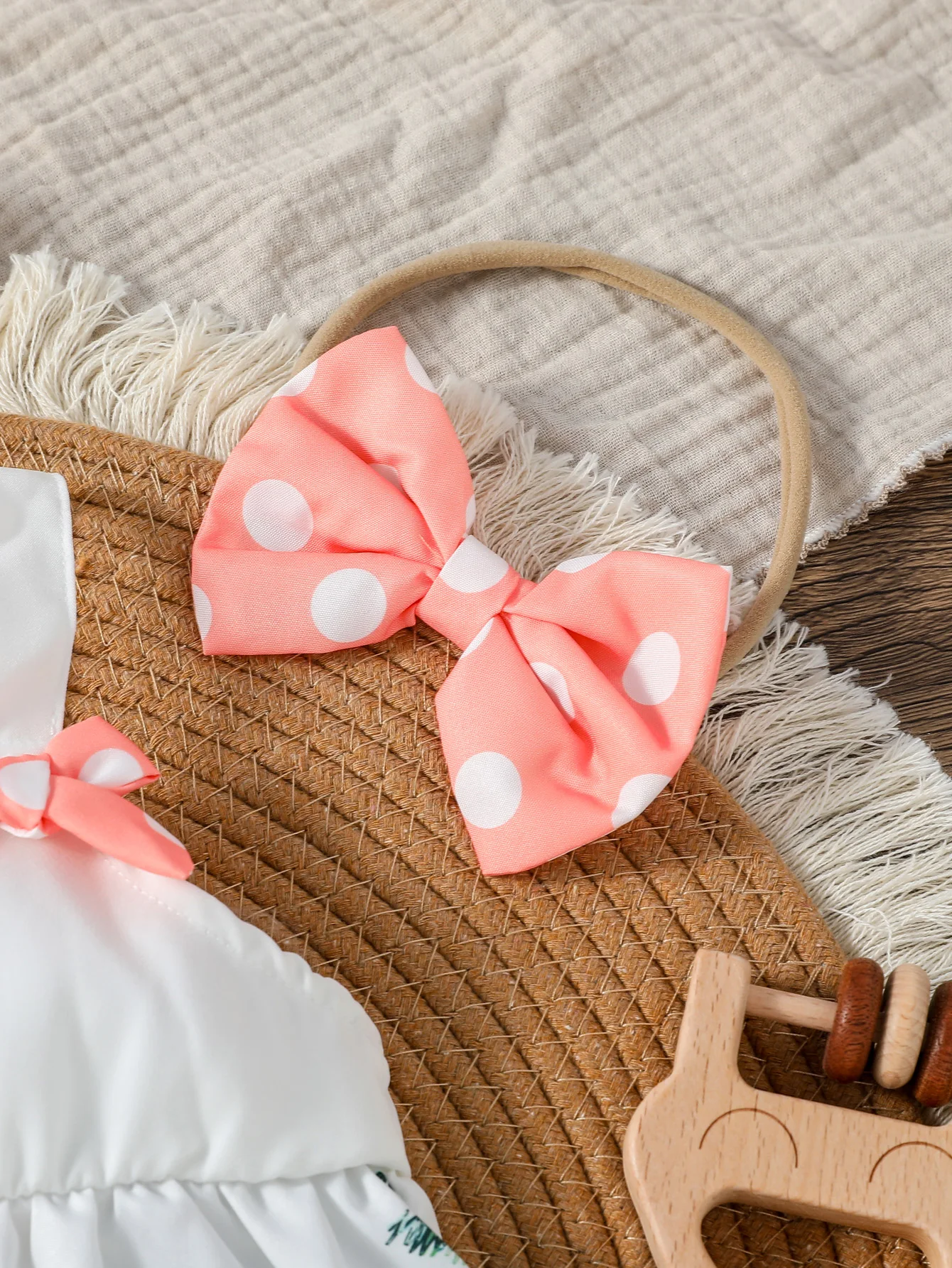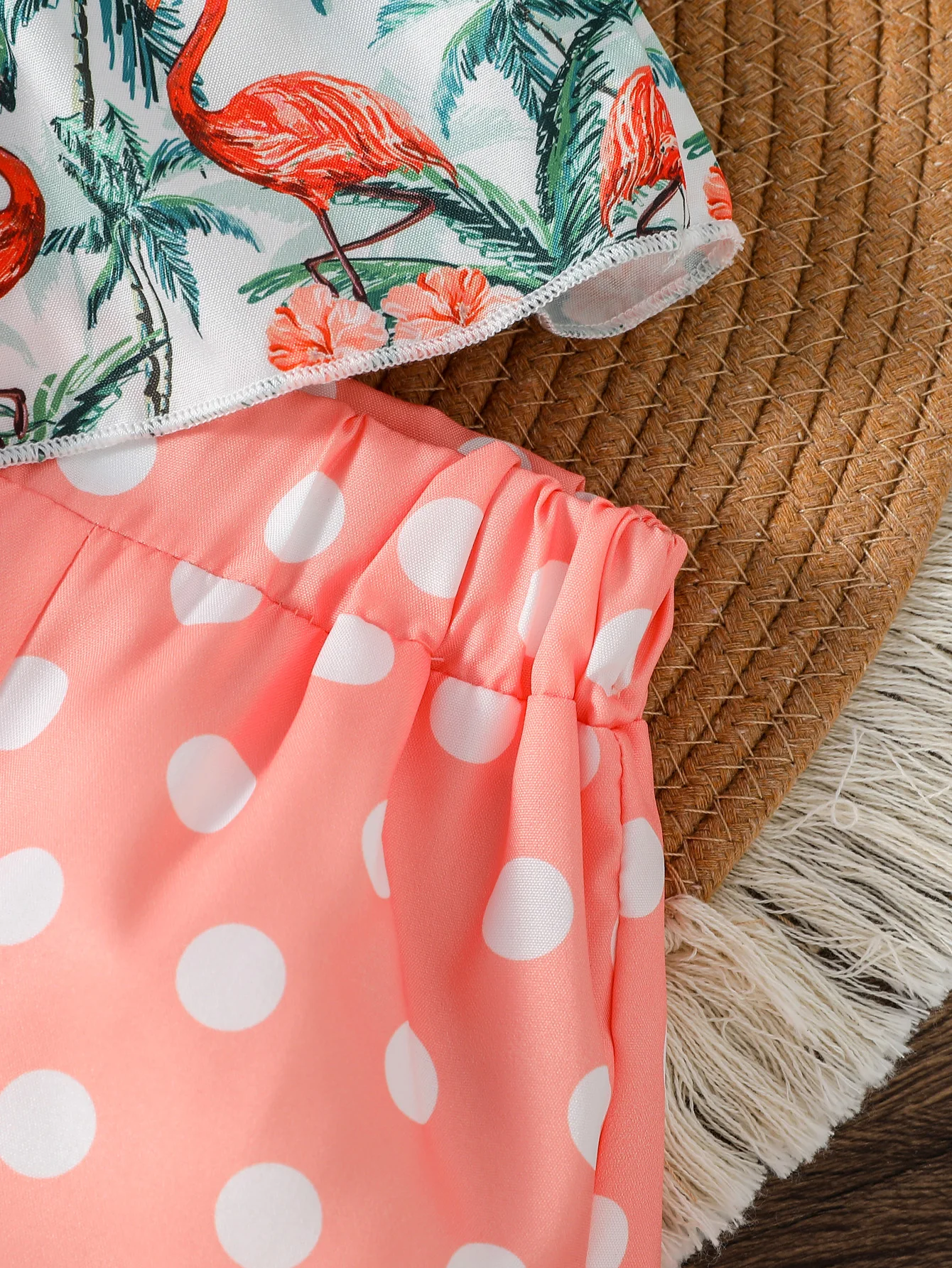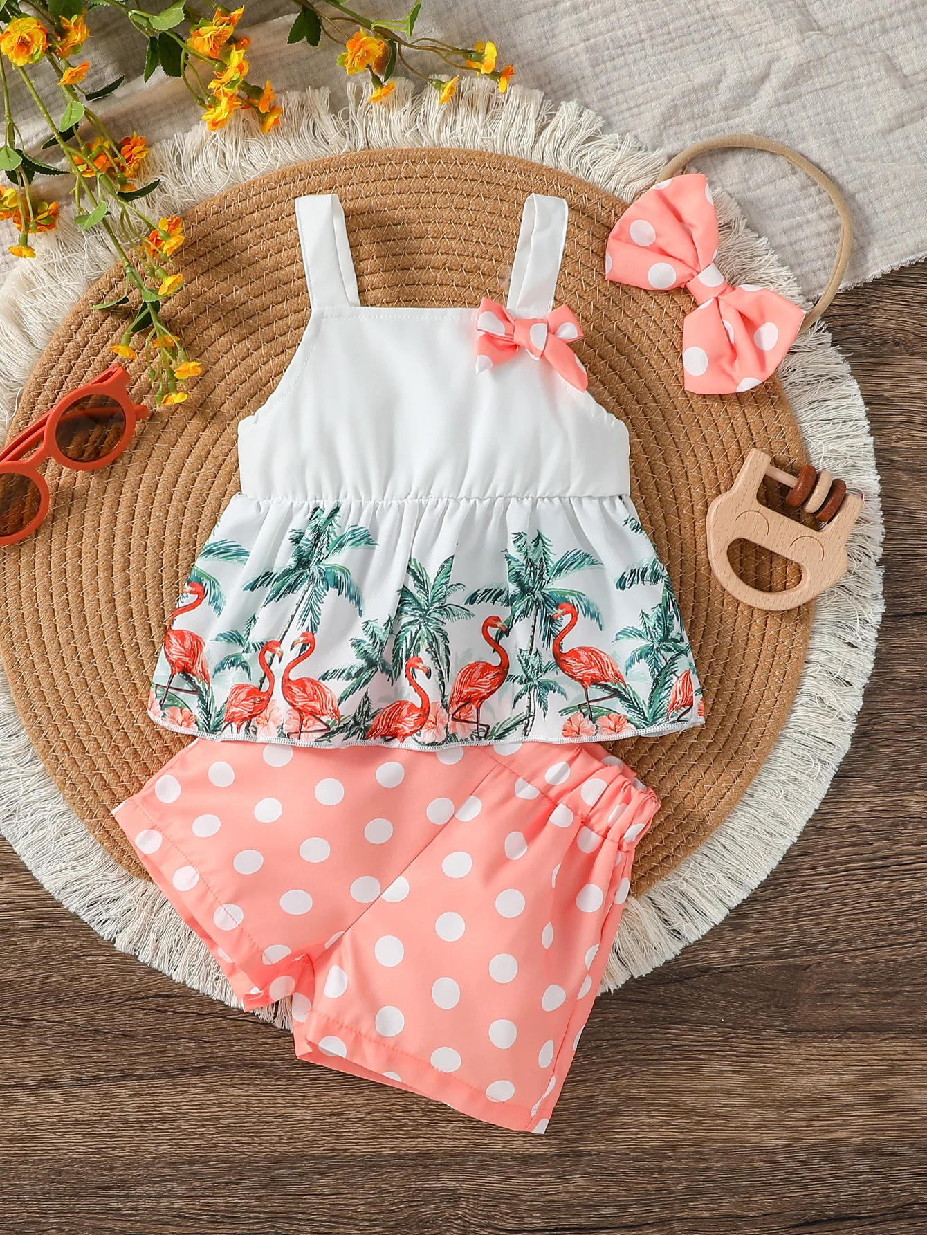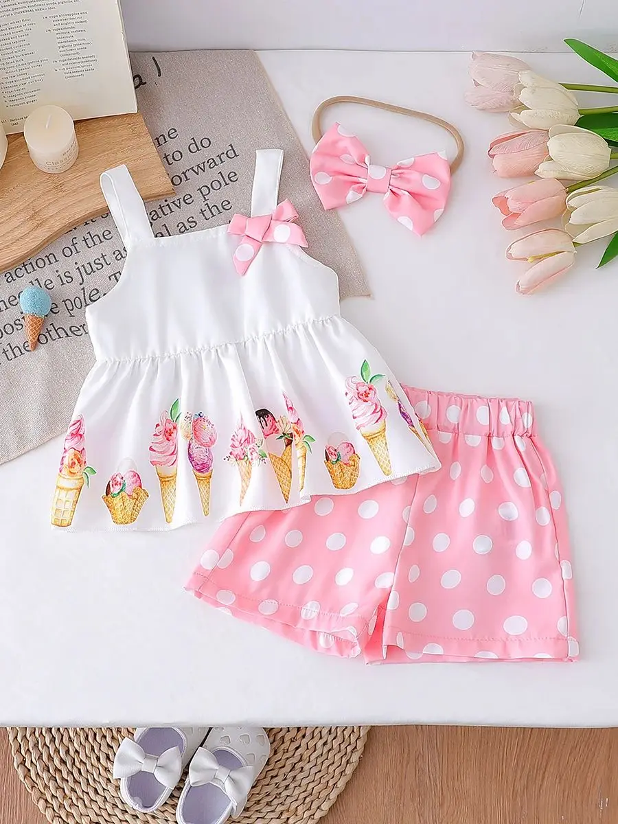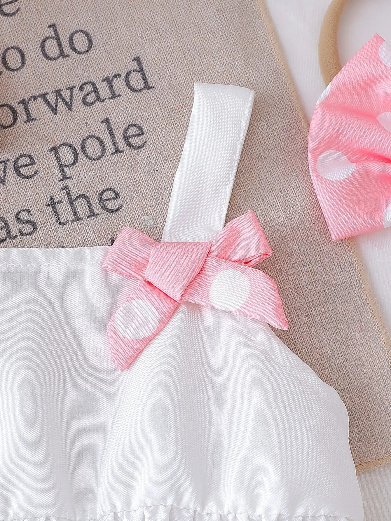 Ensemble été bébé fille crème & rose – Haut à bretelles et short à pois (2 pièces)