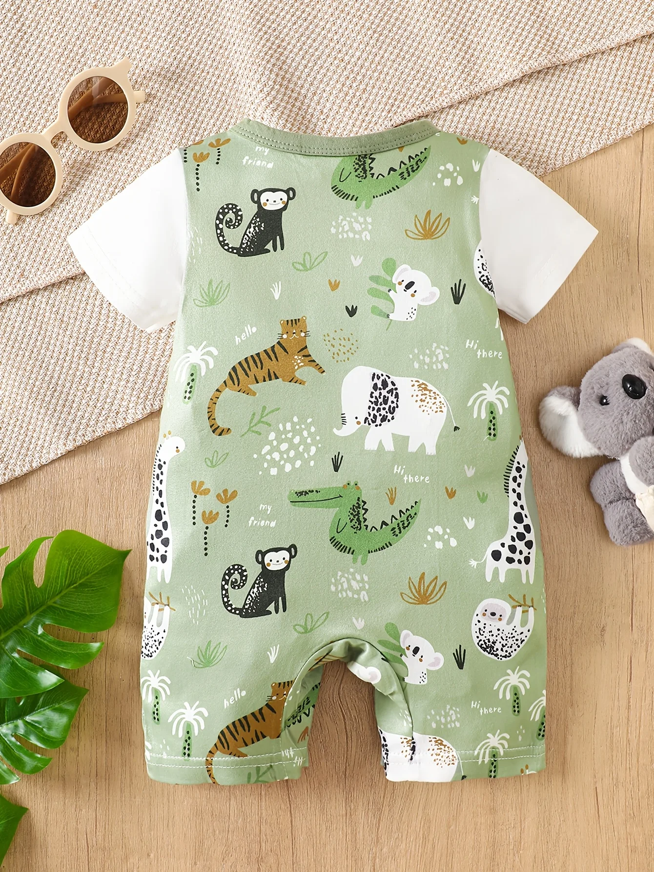 Cette combinaison imprimée effet faux deux pièces offre un style adorable tout en restant confortable pour le quotidien.