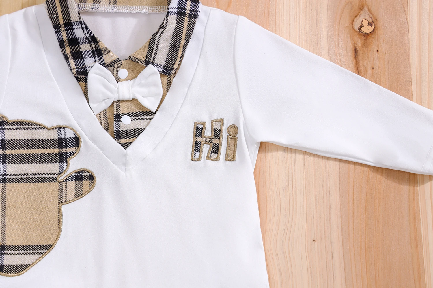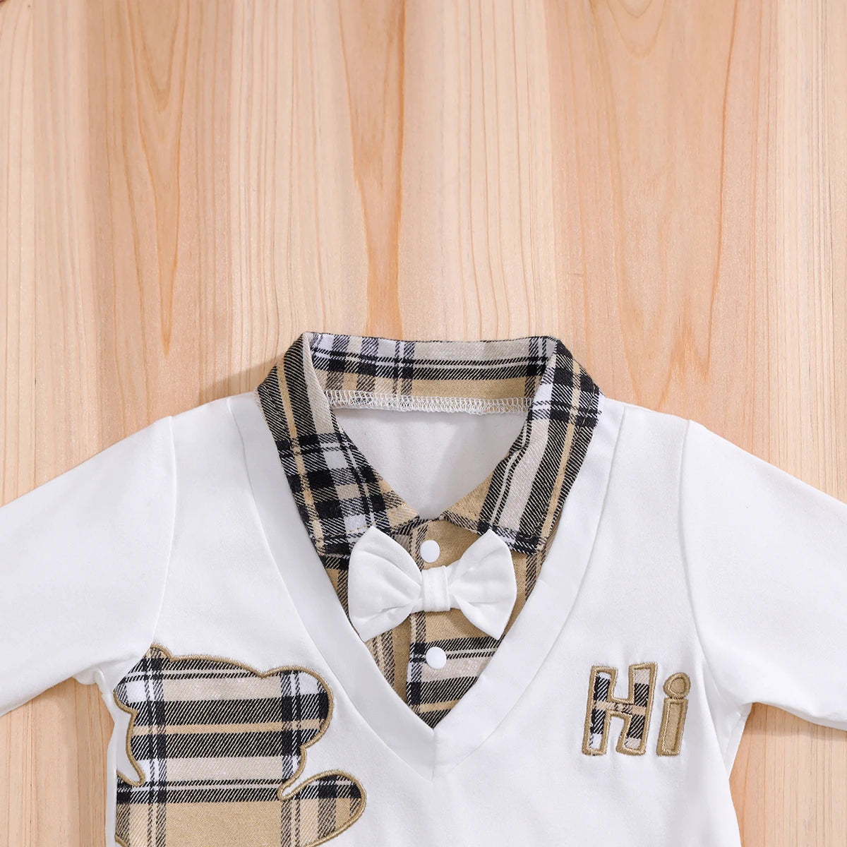 Ensemble bébé 2 pièces élégant – Haut style grenouillère & pantalon à carreaux (0 à 24 mois)