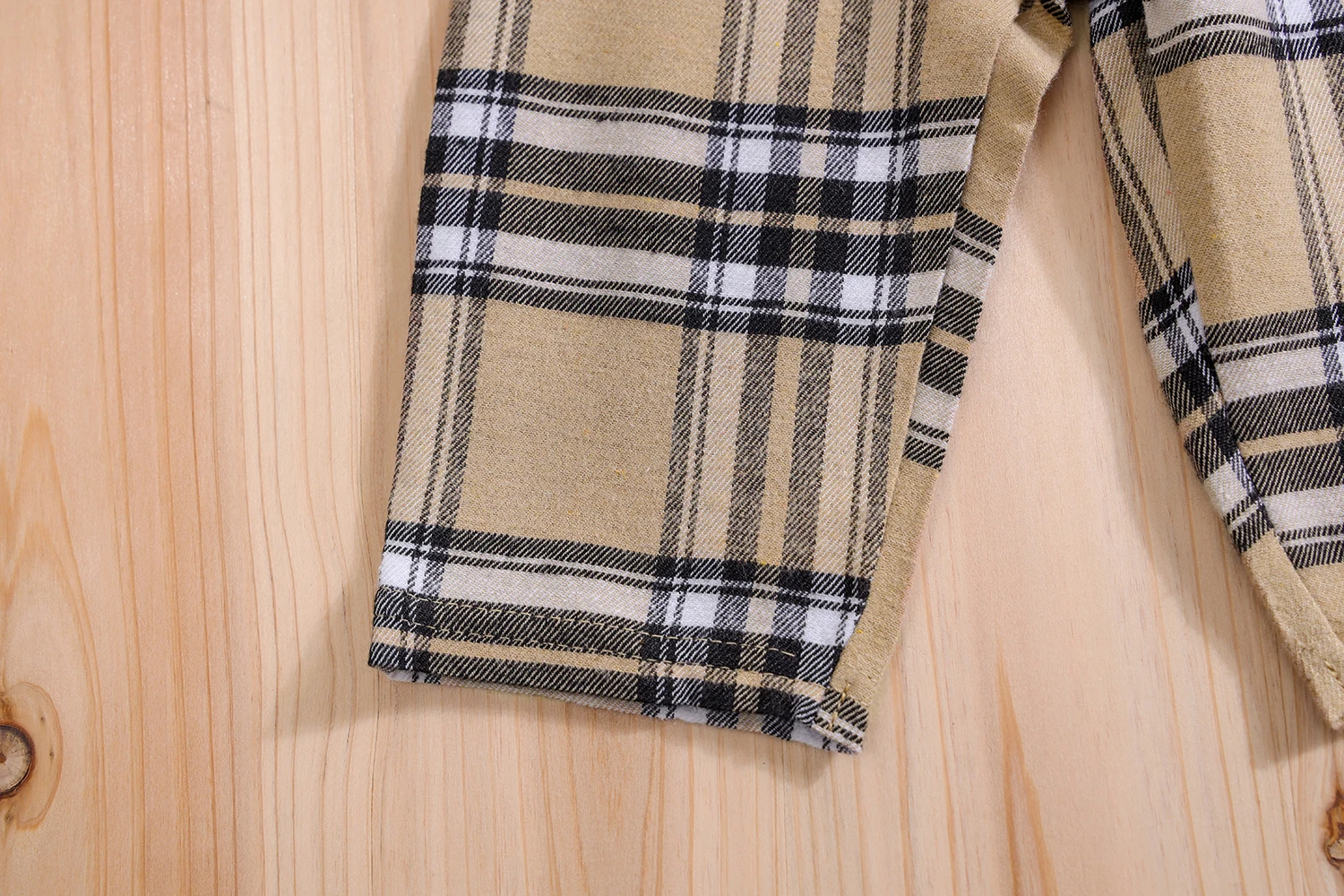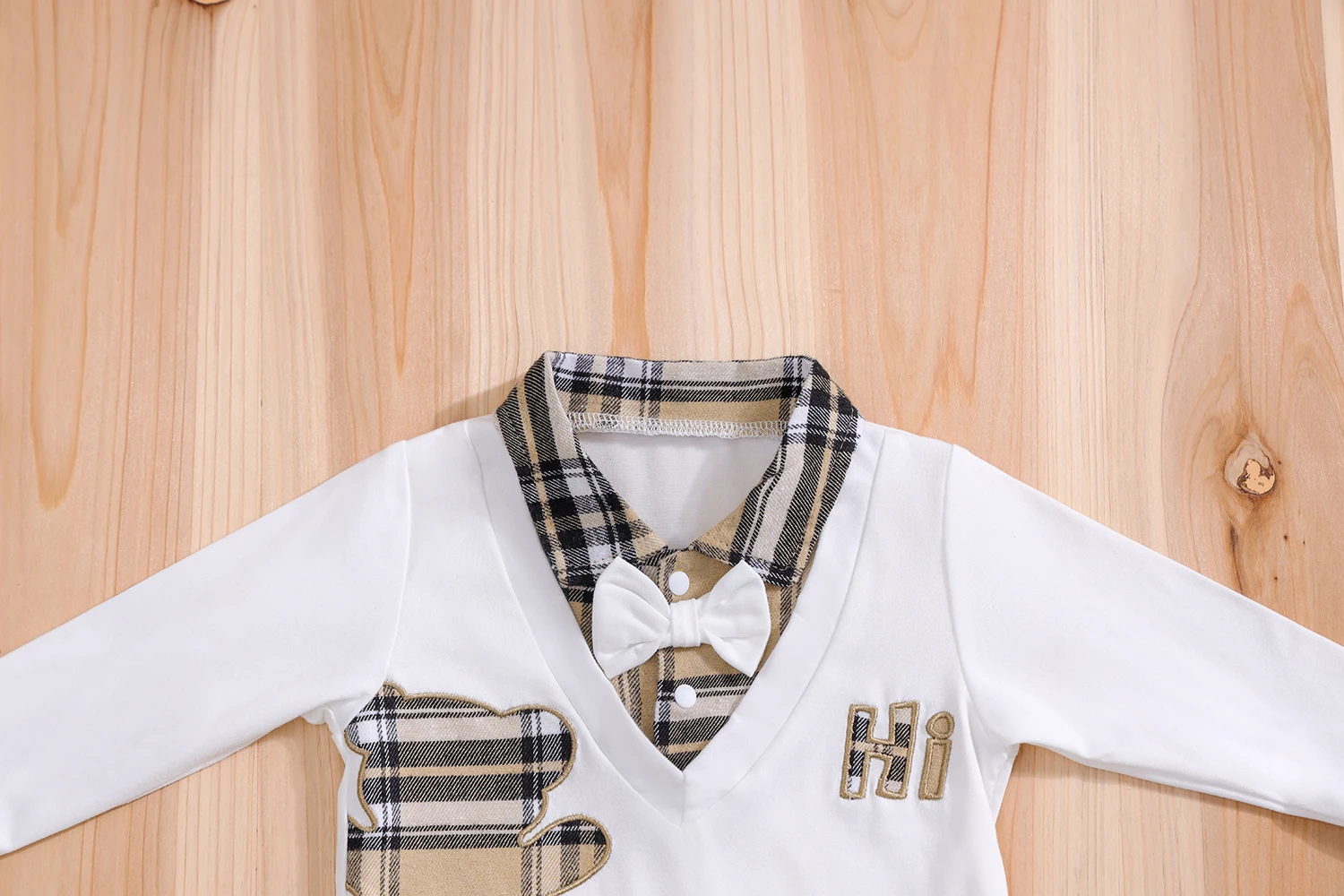 Il se compose d’un haut type grenouillère au col rabattu, doux et agréable à porter, et d’un pantalon à carreaux assorti, apportant une touche chic et intemporelle.