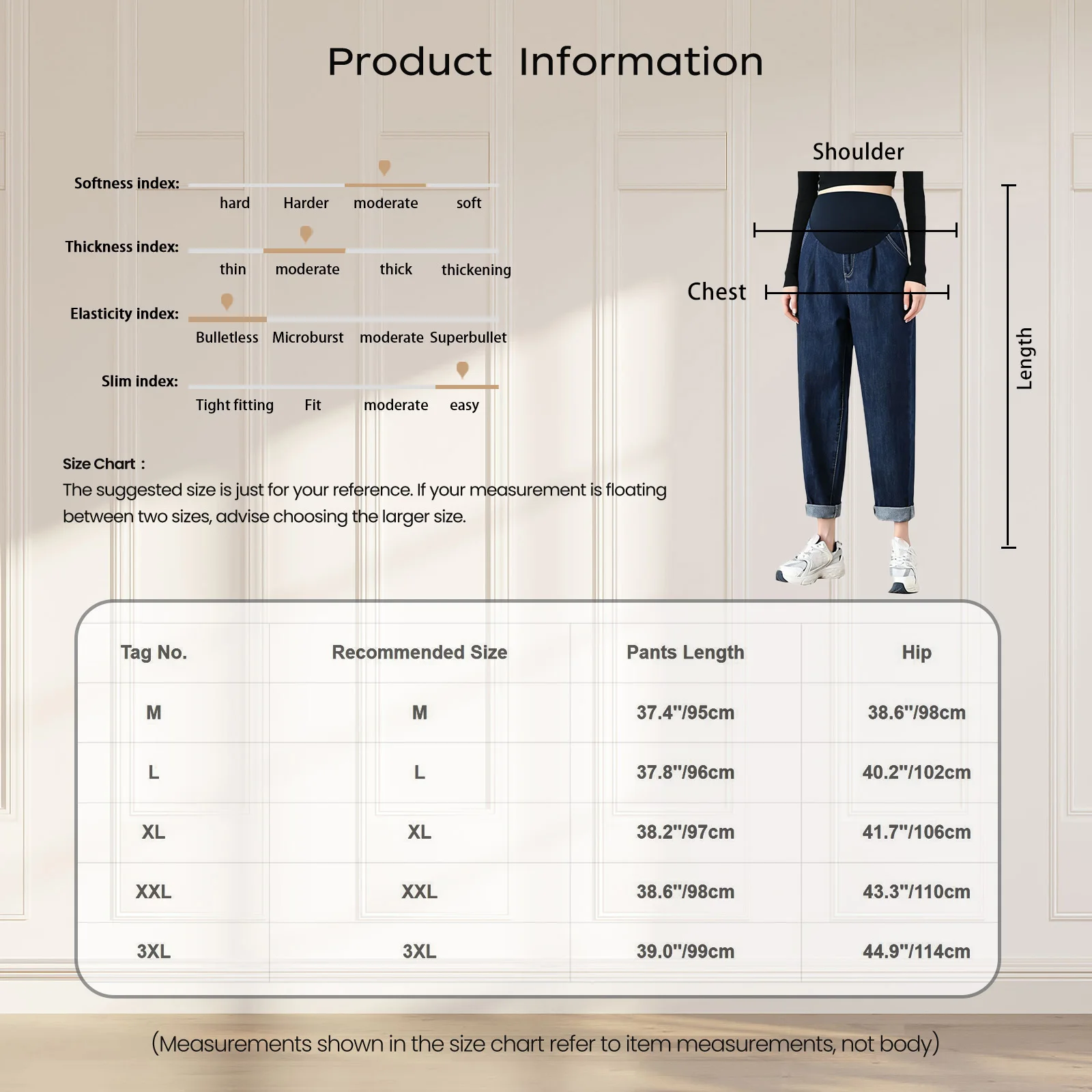 Fabriqué à partir d'un mélange de denim et de coton, offrant durabilité et confort aux femmes enceintes, garantissant une expérience de port confortable.