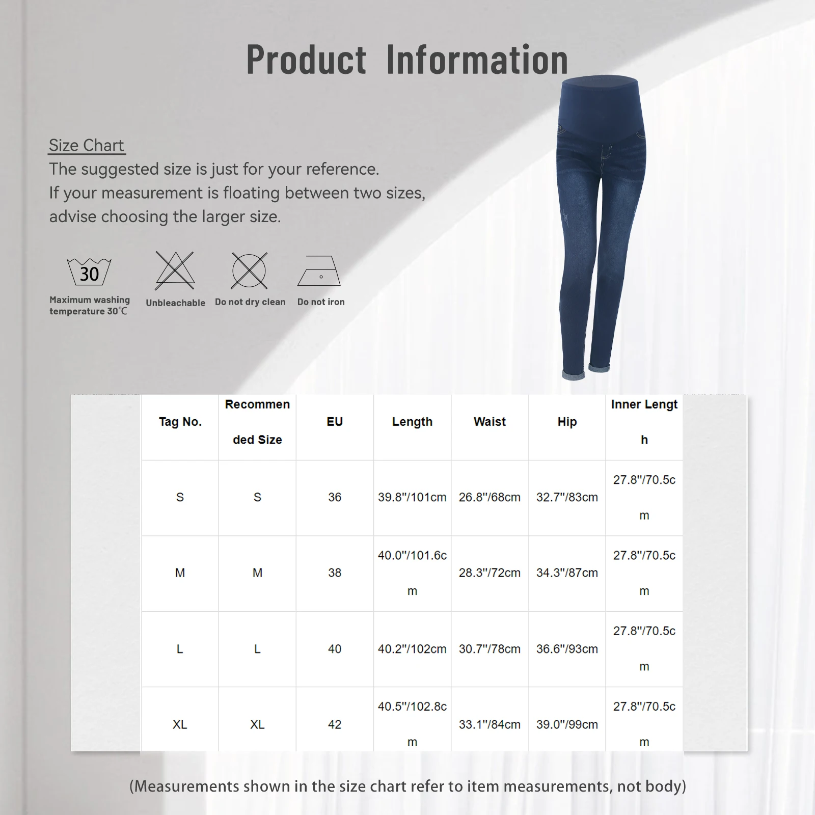 L'ensemble comprend : 1 pantalon en jean de maternité