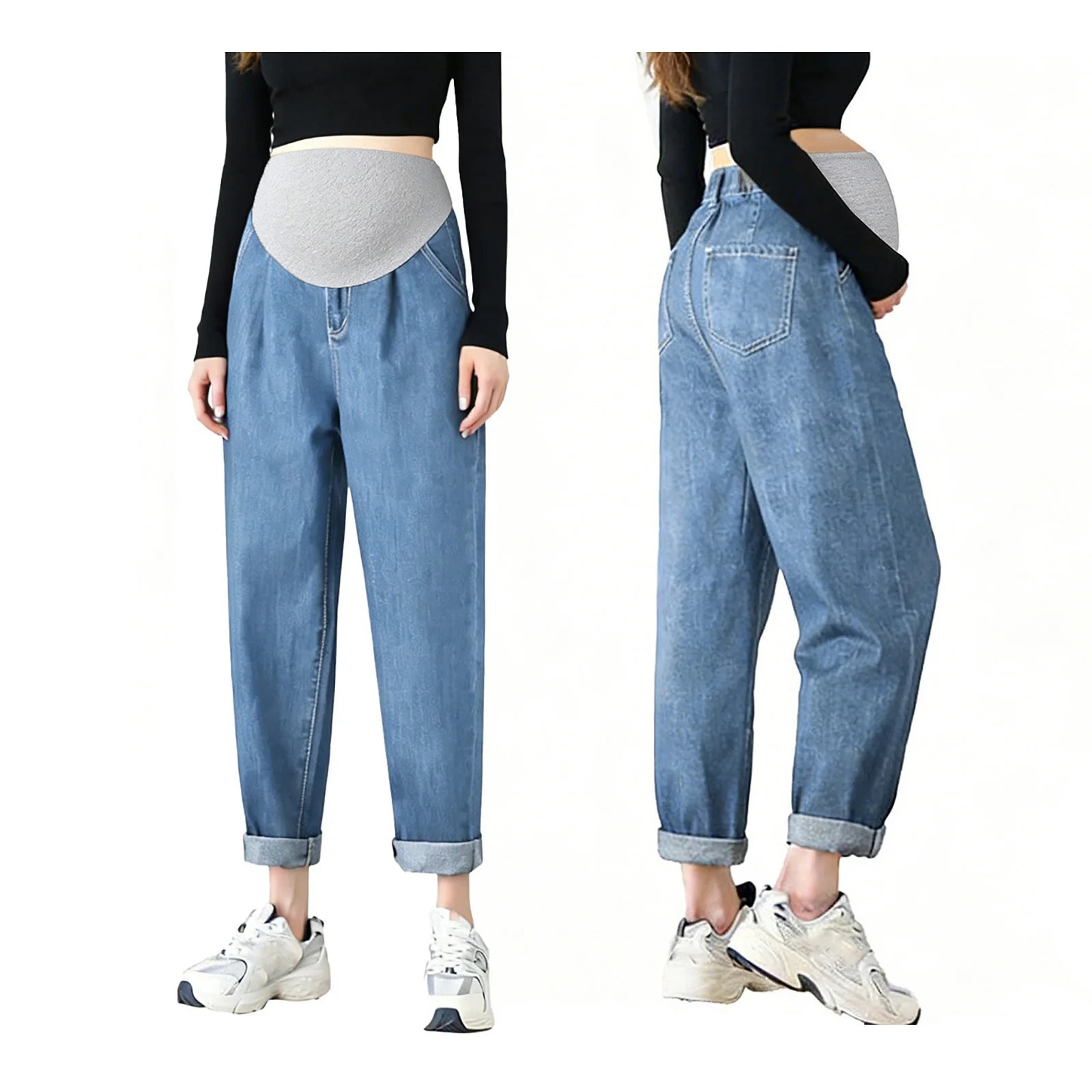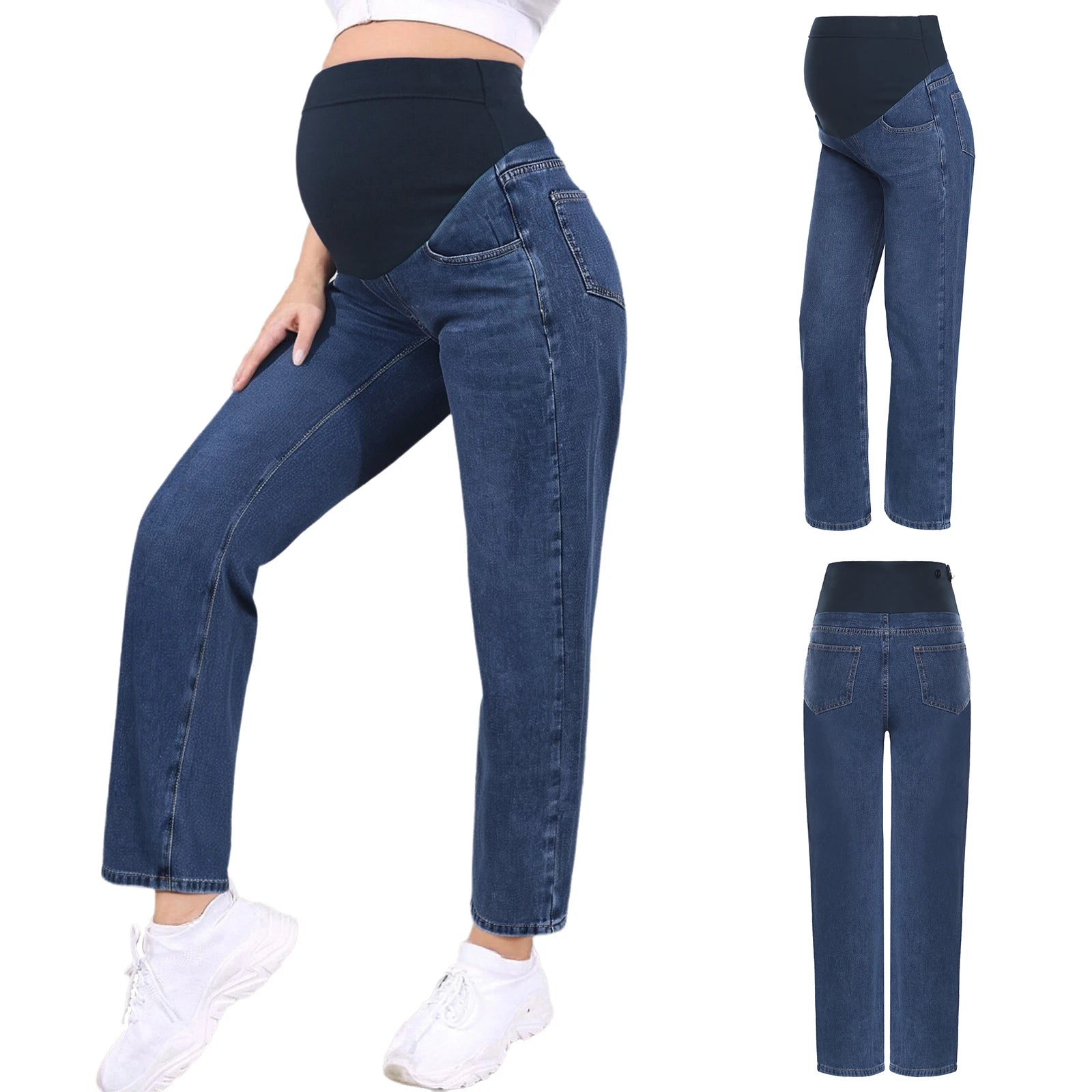 Dotés de poches, ces jeans sont non seulement à la mode mais aussi pratiques, permettant aux futures mamans de garder leurs petits essentiels à portée de main lors de leurs déplacements.