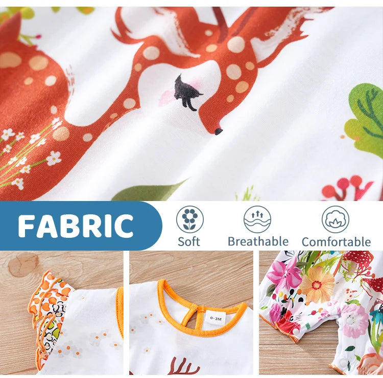 Barboteuse Bébé Été – Petit Cerf Magique (0–12 mois)