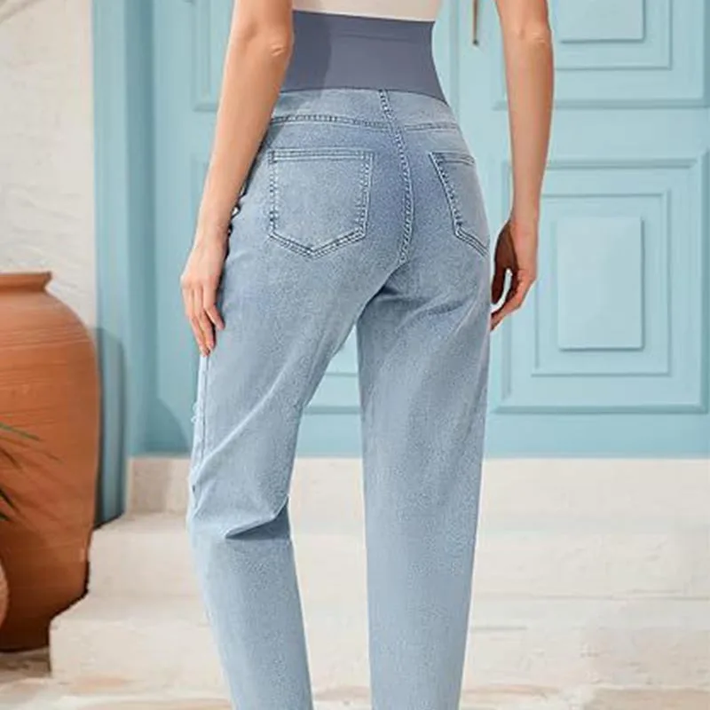 Pantalon Abdominal de grossesse, pantalon de maternité pour femmes enceintes, vêtements taille haute, jean ample en Denim