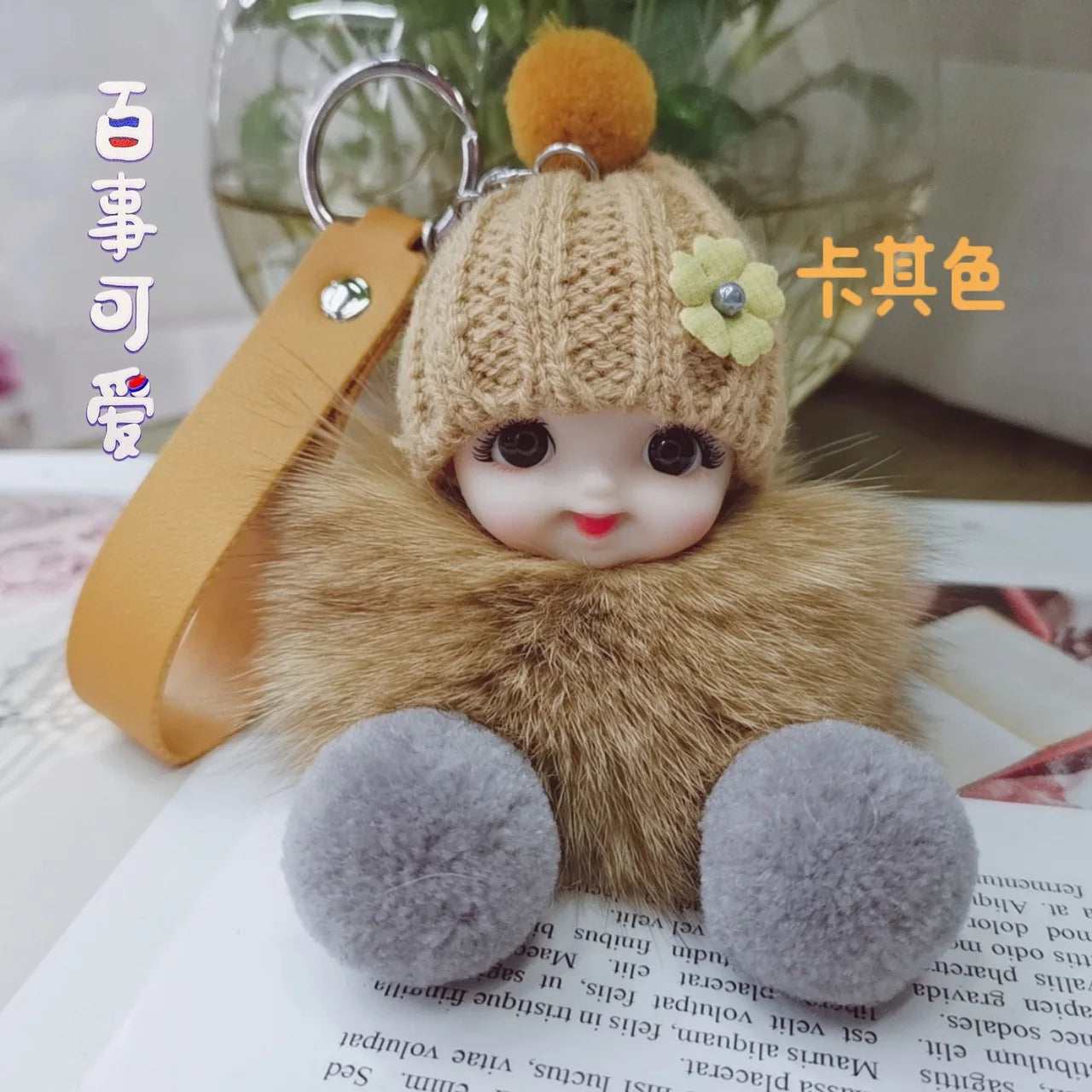 Pompom Sleeping Baby Keychain Cute Fluffy Plush Doll Keychains Women Girl Bags Keyrings Cars Key Ring Gift Charming Decoration