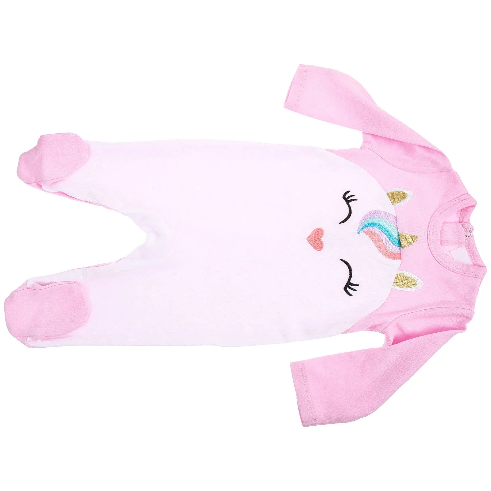 Pyjama licorne bébé fille en coton – Barboteuse à pieds manches longues