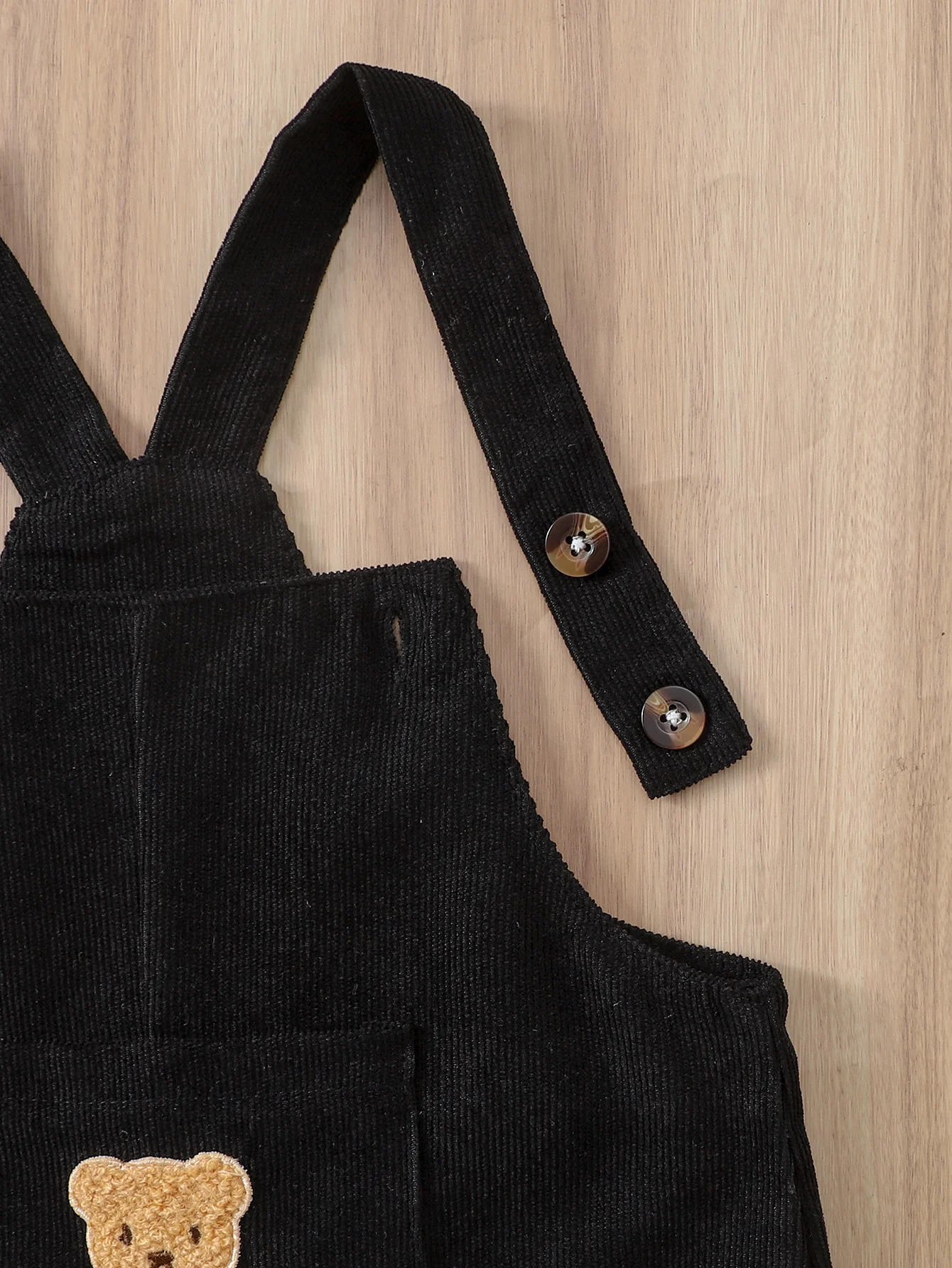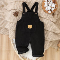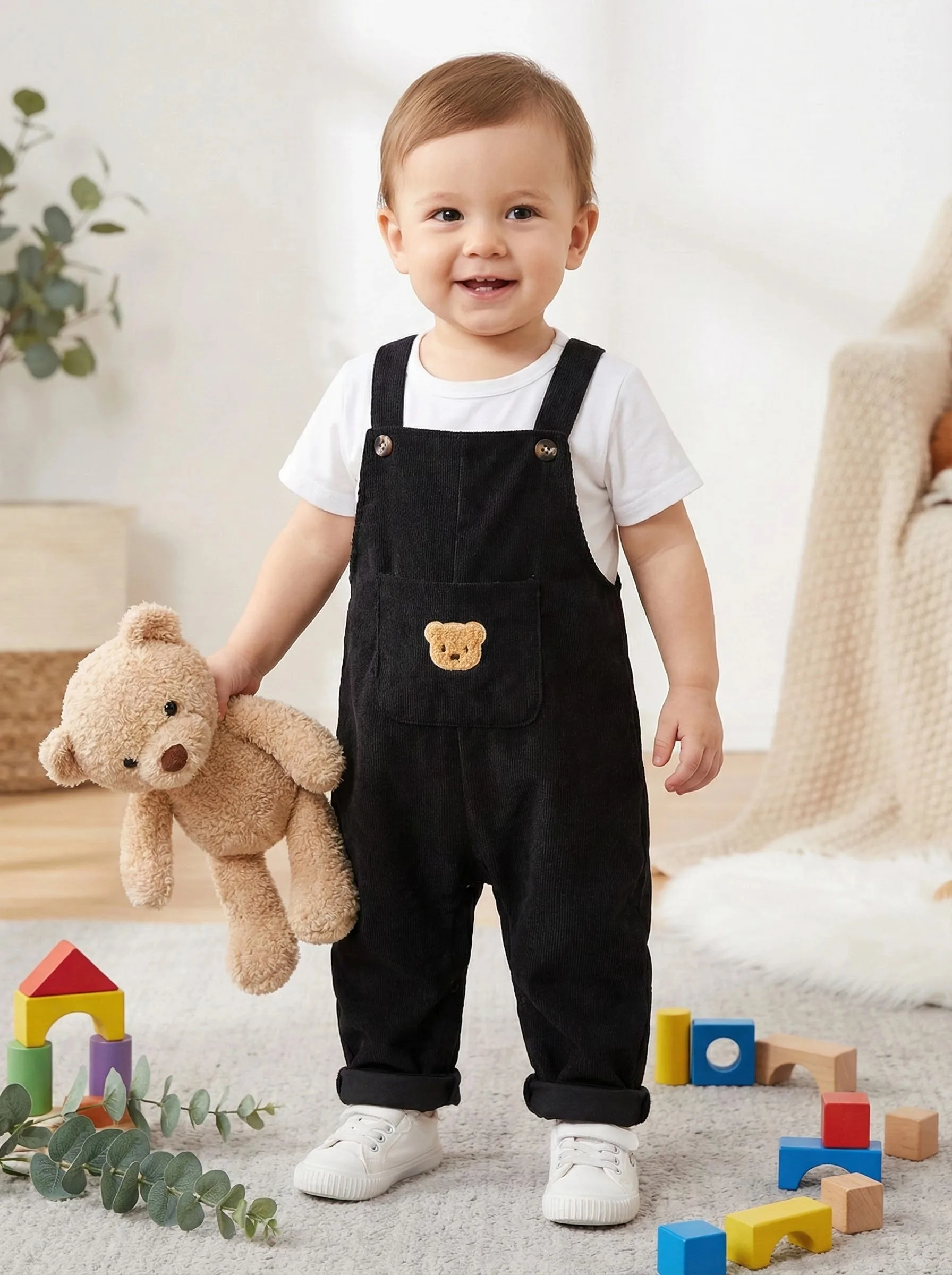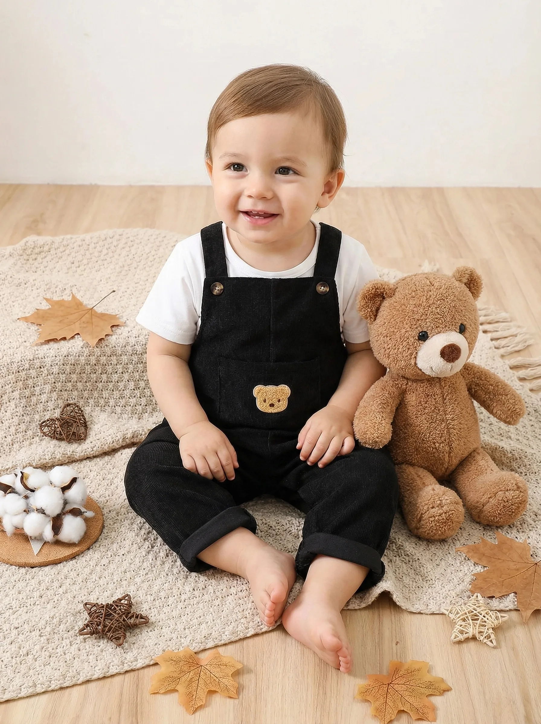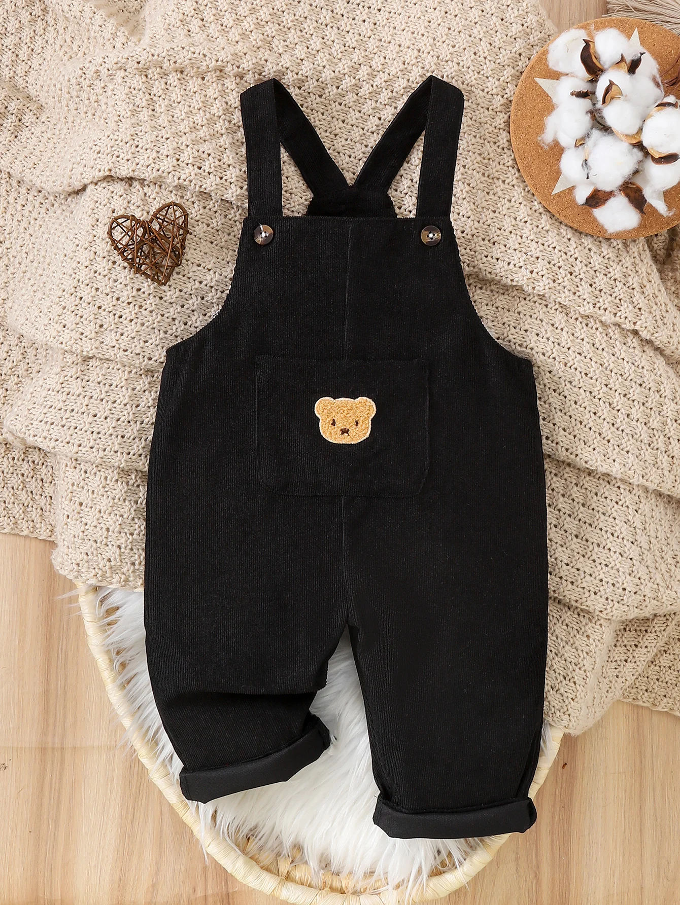 Salopette d’hiver bébé en velours côtelé – Chaude, douce et confortable, motif ourson