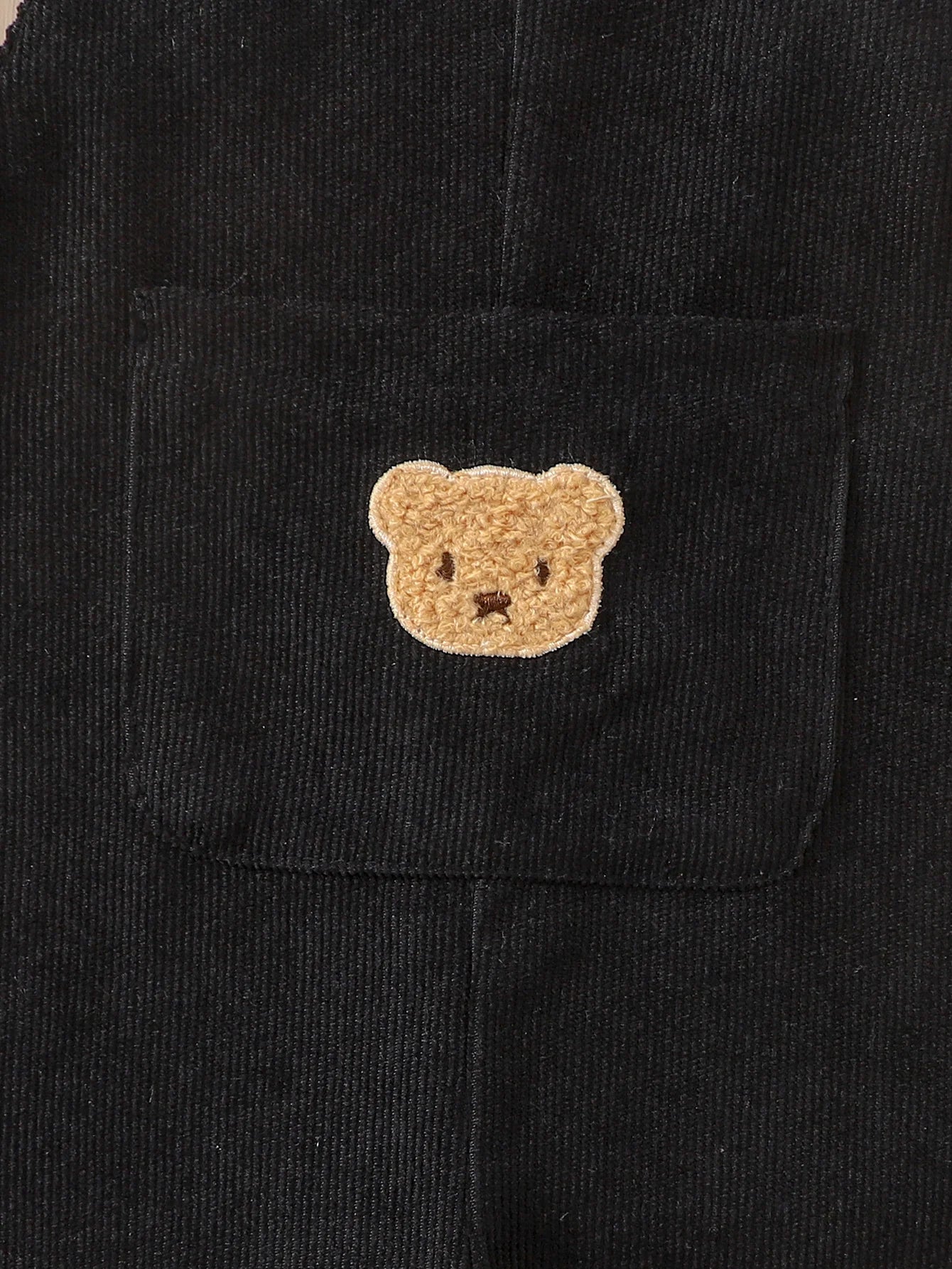 L'adorable étiquette décorative en forme d'ours apporte une touche ludique, faisant de cette salopette un modèle très apprécié des enfants.