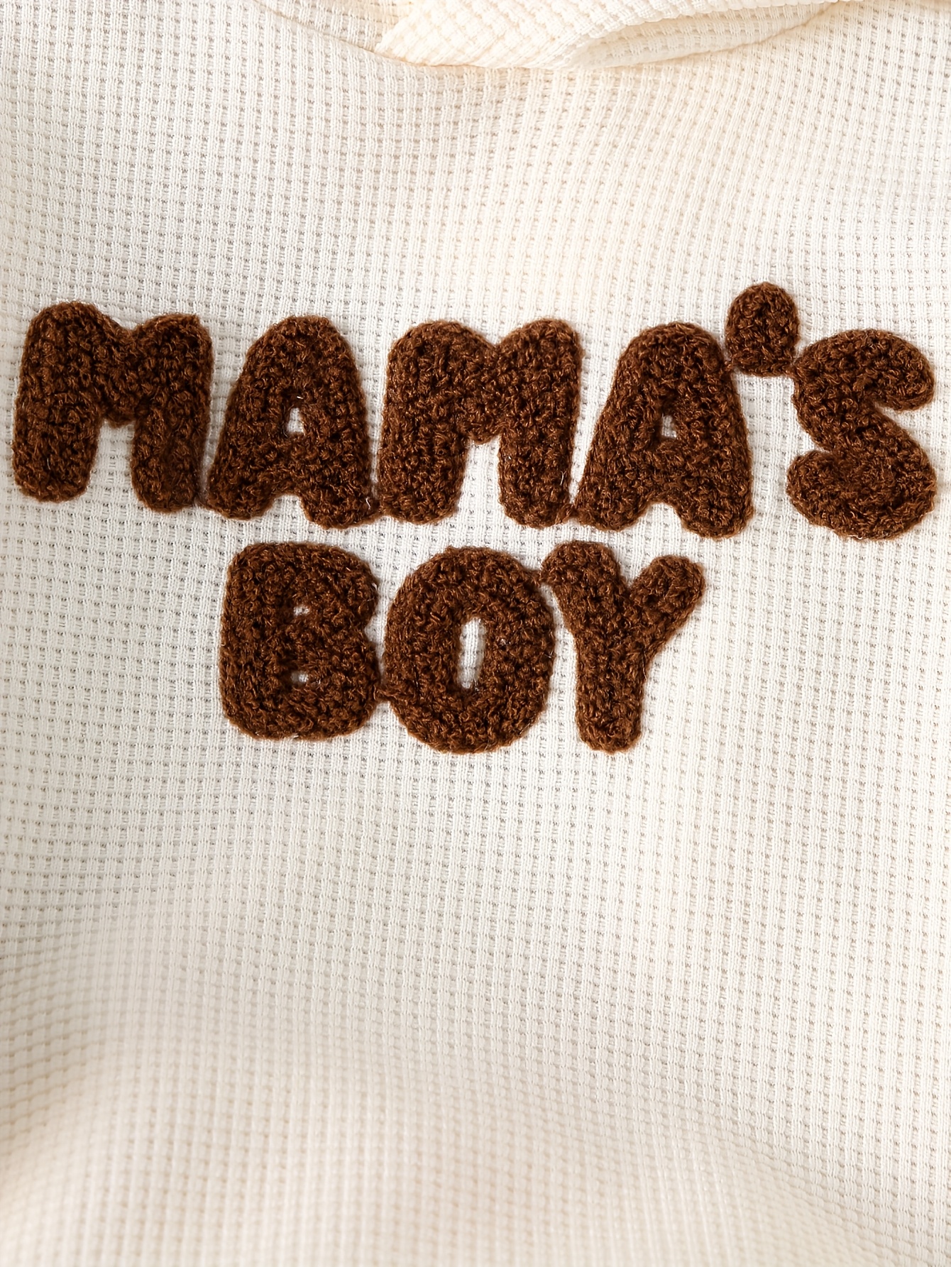 Ce sweat-shirt à capuche pour bébé garçon est parfait pour un look doux, confortable et tendance. Conçu avec un tissu texturé effet waffle, il offre une sensation agréable sur la peau tout en gardant bébé bien au chaud. L’inscription “MAMA’S BOY” apporte une touche affectueuse et moderne, idéale pour le quotidien ou les sorties en famille.