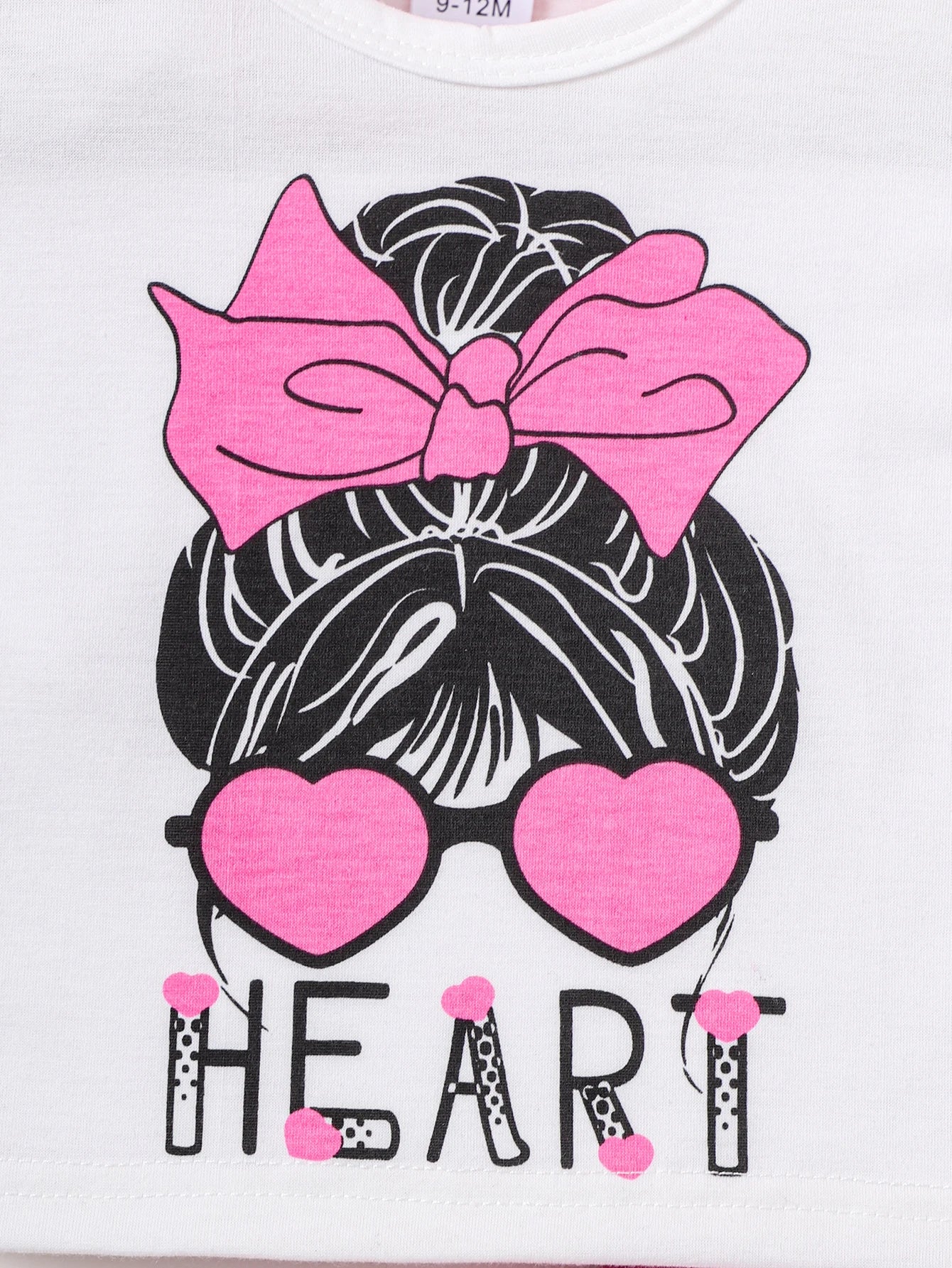 Ensemble Bébé Fille “Heart” – T-shirt + Bas Rose – Été (0–12 mois)