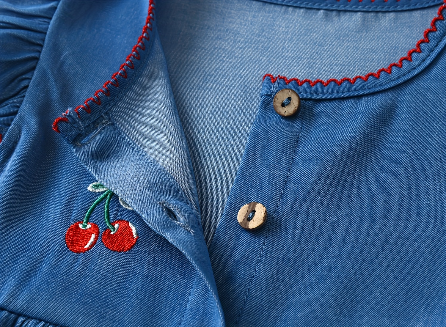 Ses manches volantées et ses petits boutons décoratifs apportent une touche chic et intemporelle, idéale pour les sorties, les photos ou les occasions spéciales.