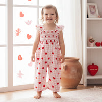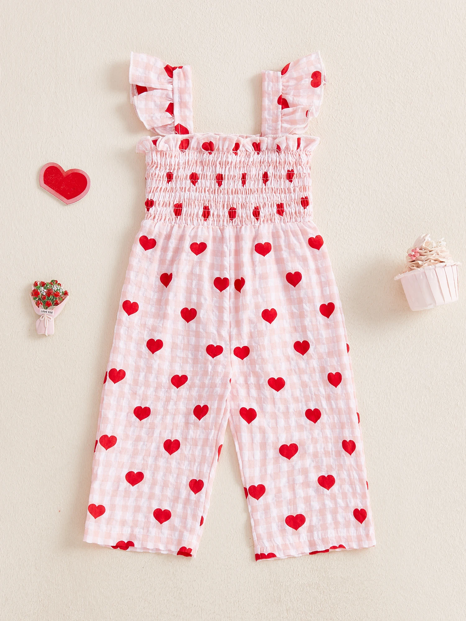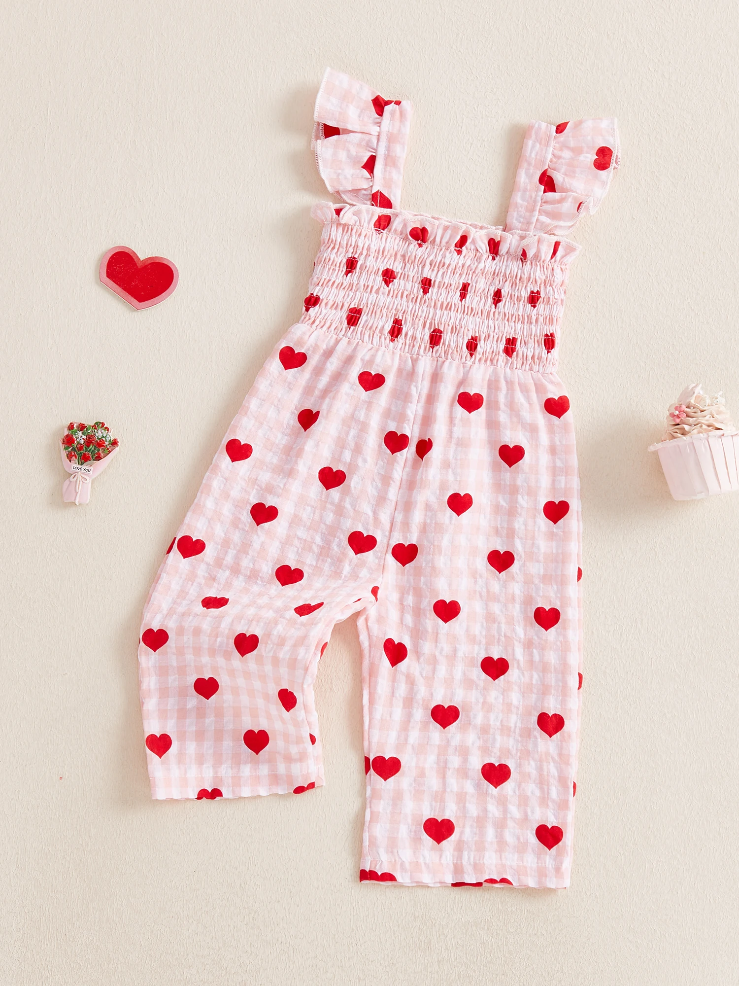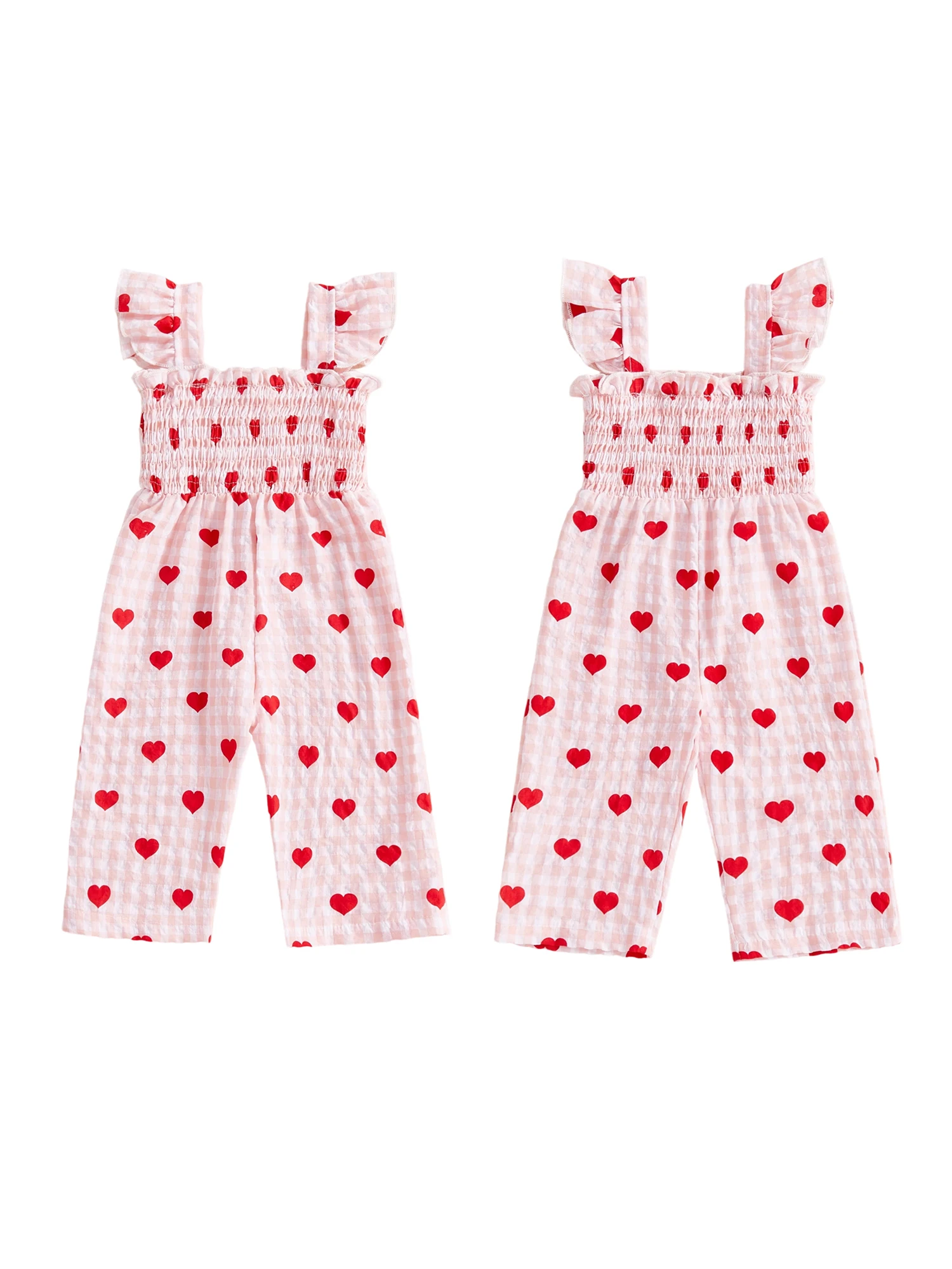 Toddler Girls Jumpsuit, Sleeveless Pleated Plaid Heart Print Pants for Valentines Day