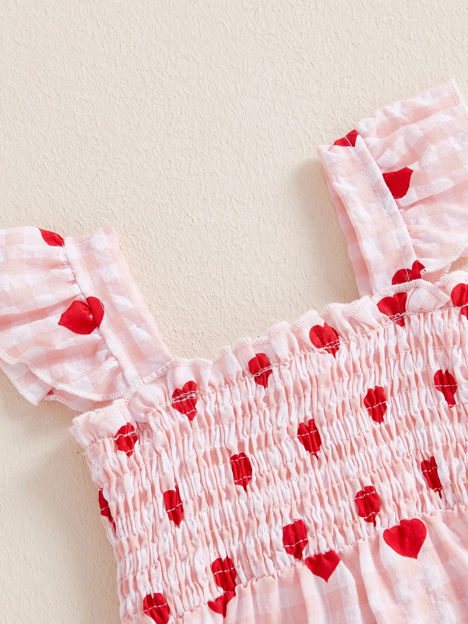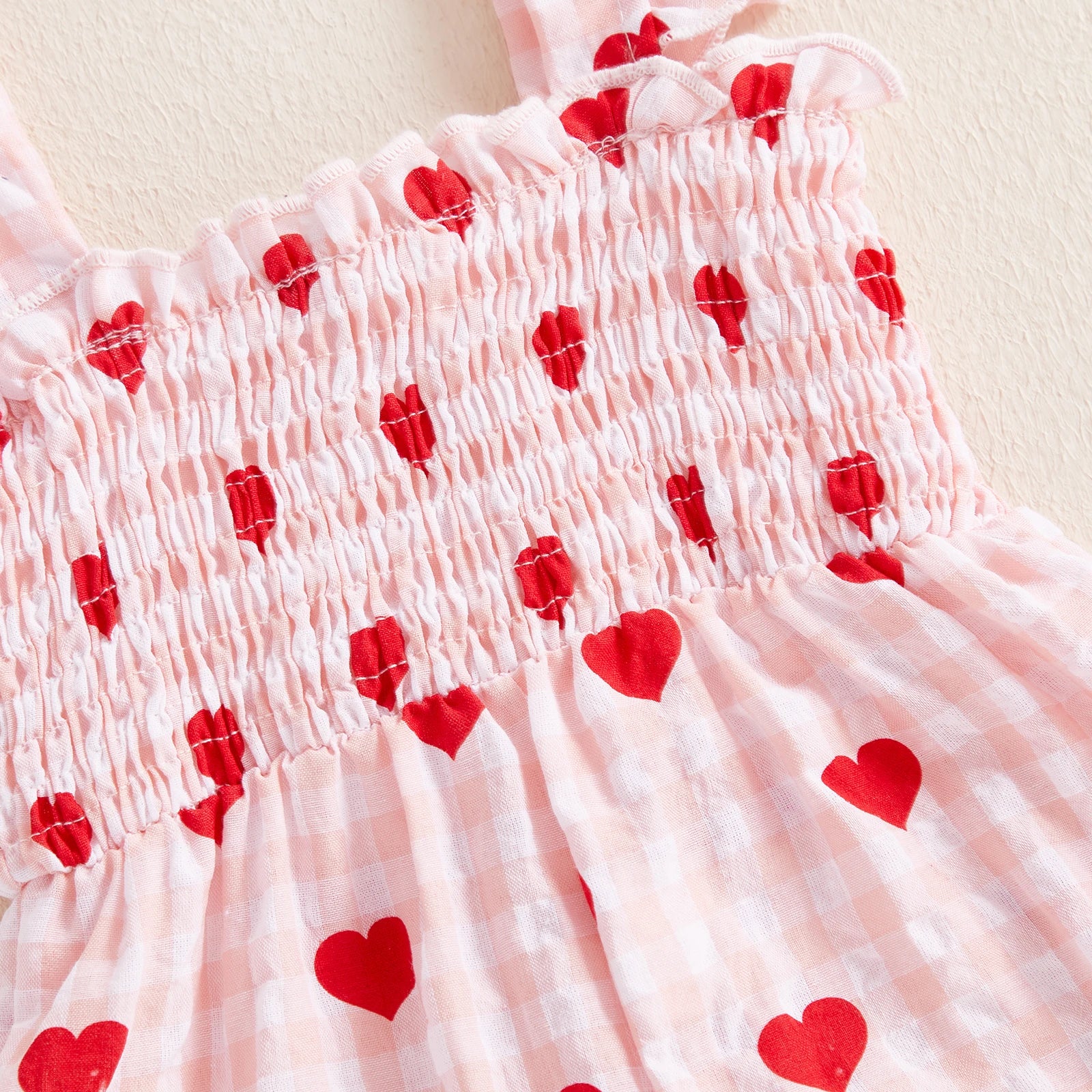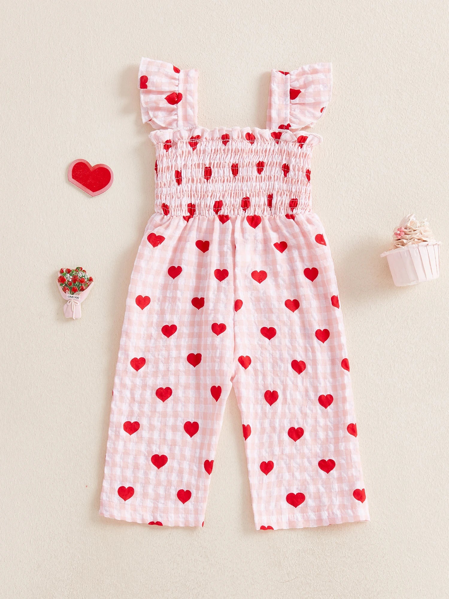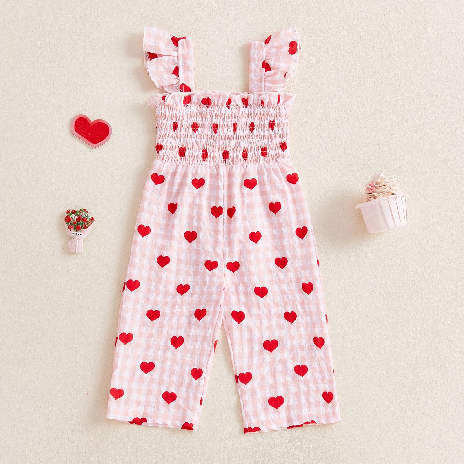 Toddler Girls Jumpsuit, Sleeveless Pleated Plaid Heart Print Pants for Valentines Day