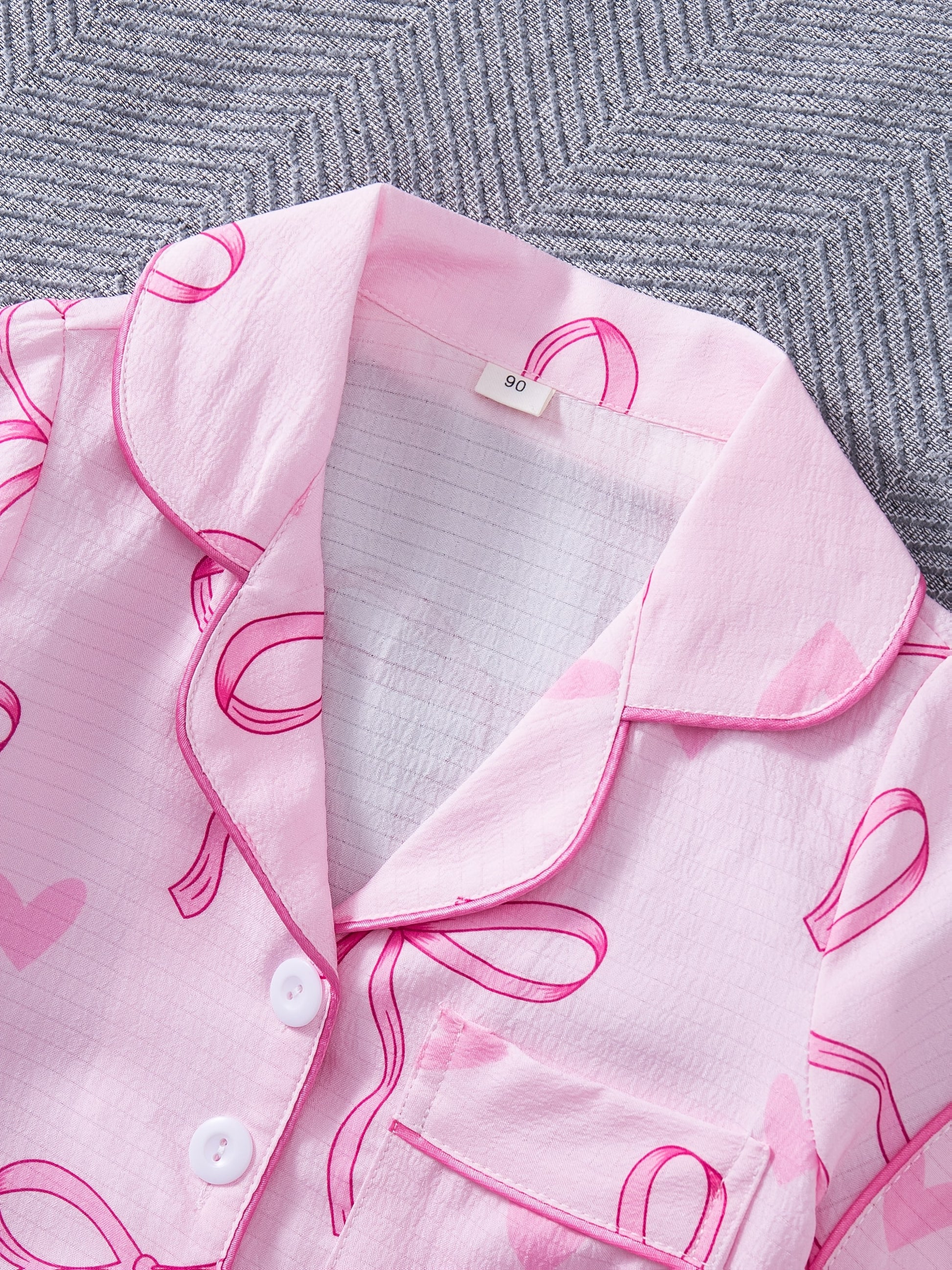 Pyjama Fille 2 Pièces Rose à Nœuds & Cœurs – Ensemble Été Confortable (2 à 8 ans)