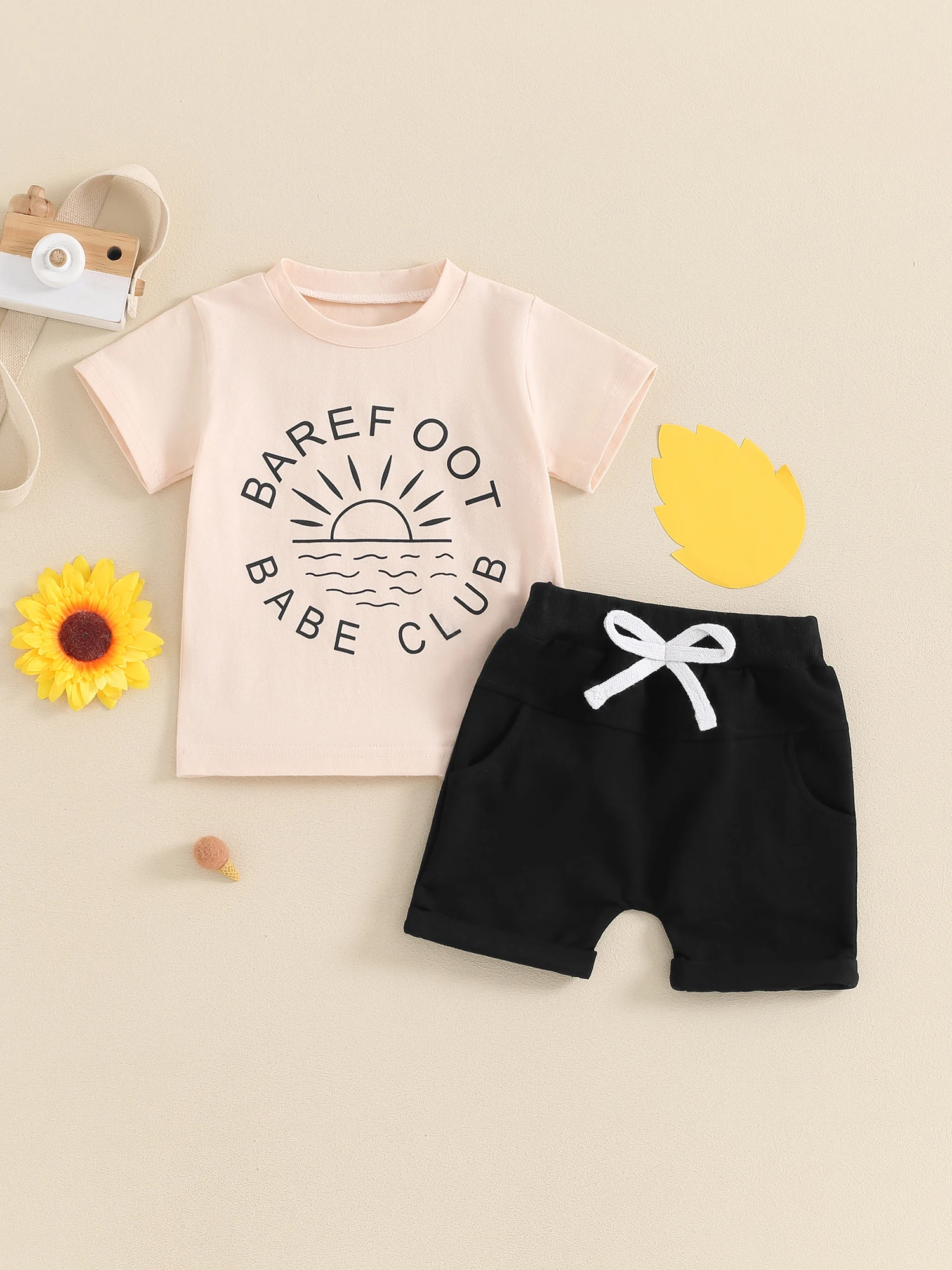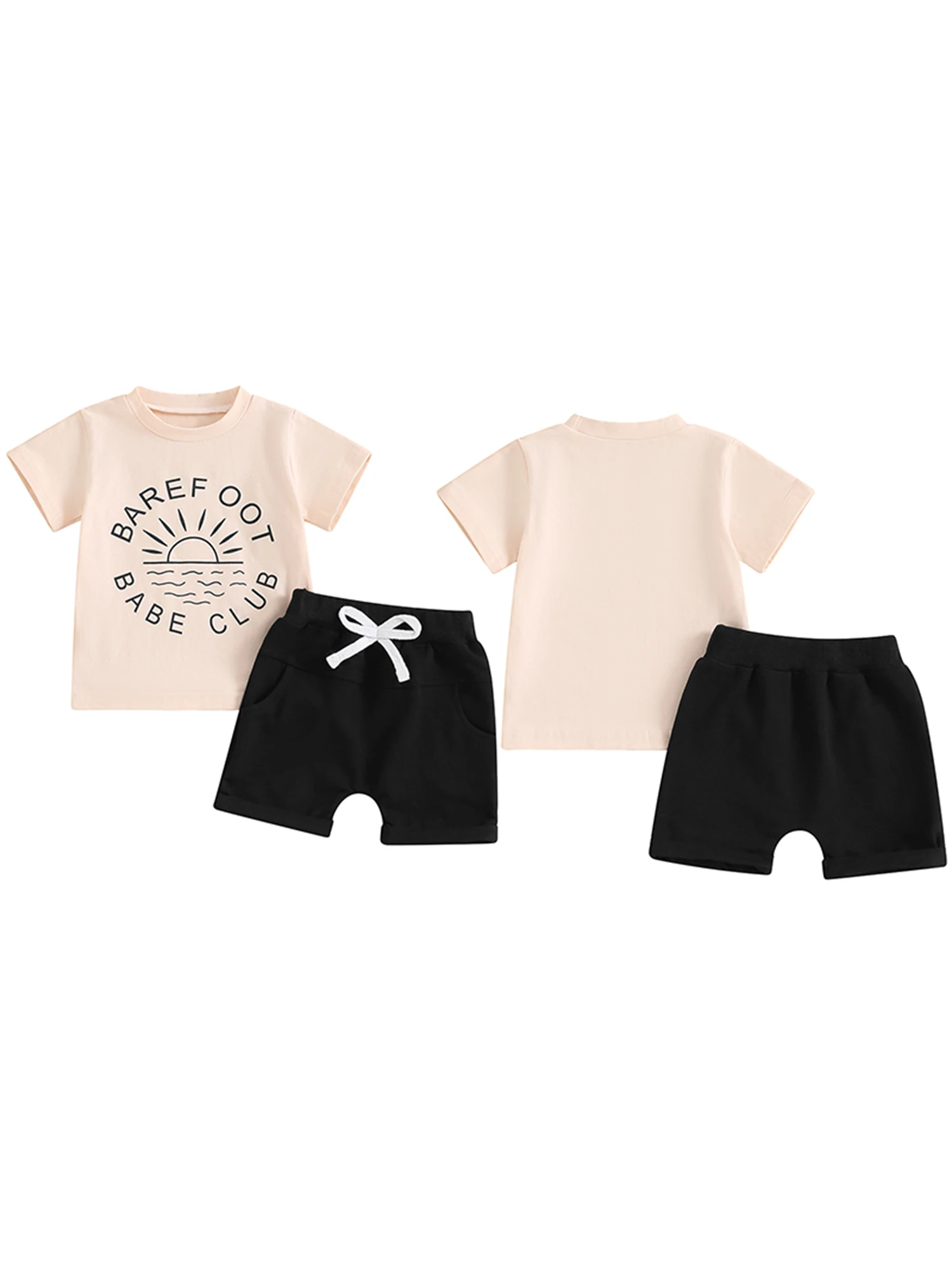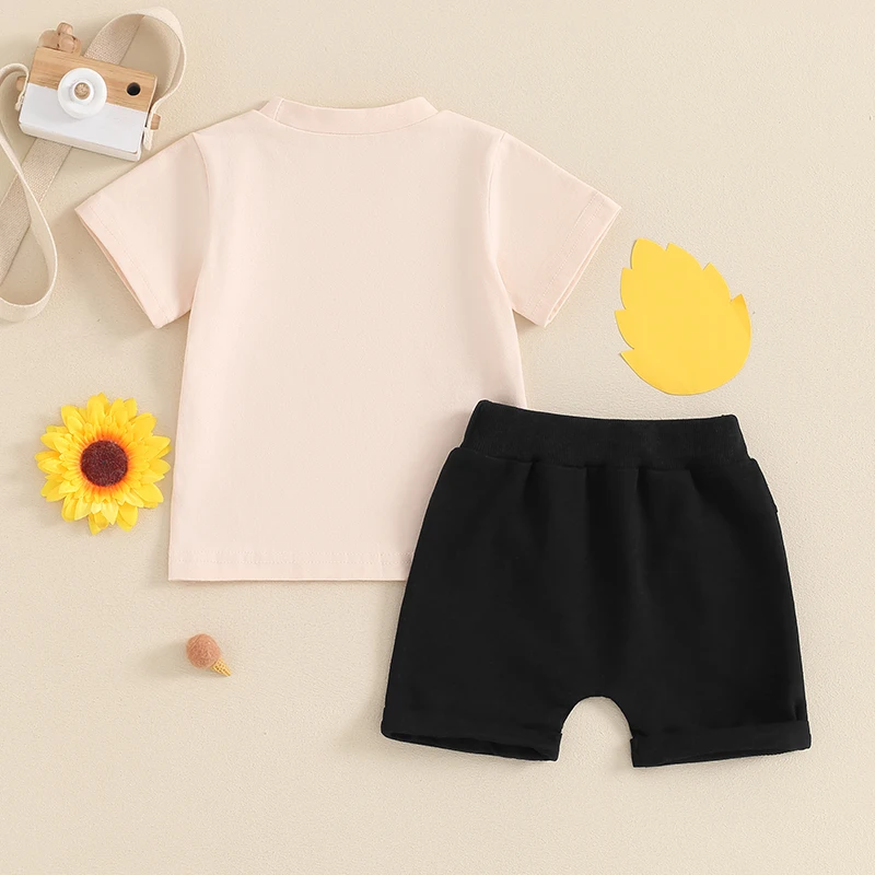 Tenue d'été pour tout-petit garçon, haut à manches courtes avec lettres et soleil imprimées, short à taille élastique, vêtements 2 pièces