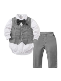 Tenue Gentleman Bébé Garçon – Ensemble Habillé (Chemise + Gilet + Pantalon) 0–24 Mois