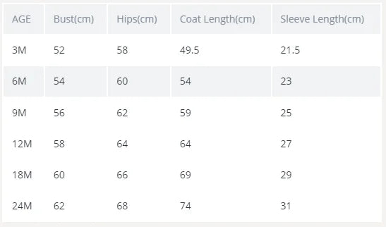 size_info: {"sizeInfoList":[{"length":{"cm":"52","inch":"20.47"},"size":"3M","vid":-1},{"length":{"cm":"54","inch":"21.26"},"size":"6M","vid":-2},{"length":{"cm":"56","inch":"22.05"},"size":"9M","vid":-3},{"length":{"cm":"58","inch":"22.83"},"size":"12M","vid":-4},{"length":{"cm":"60","inch":"23.62"},"size":"18M","vid":-5},{"length":{"cm":"62","inch":"24.41"},"size":"24M","vid":-6}]}