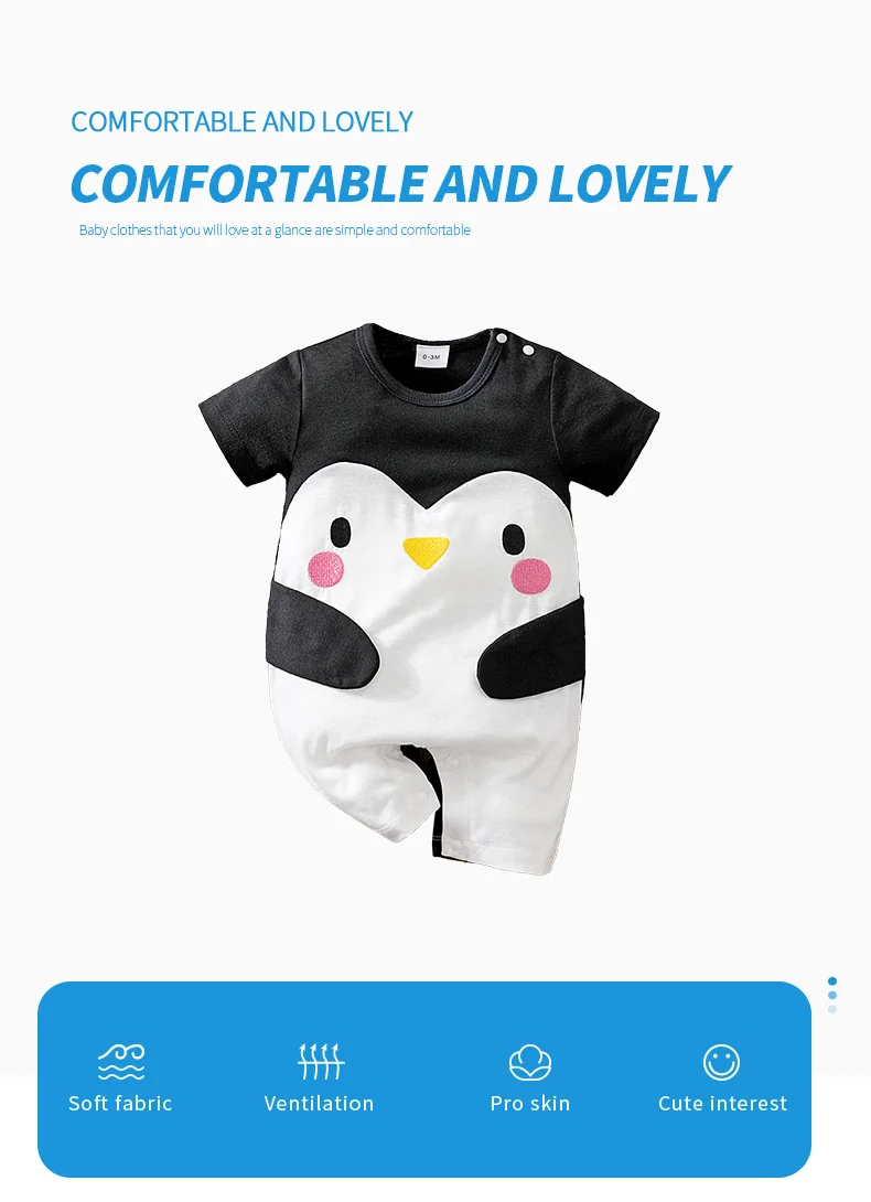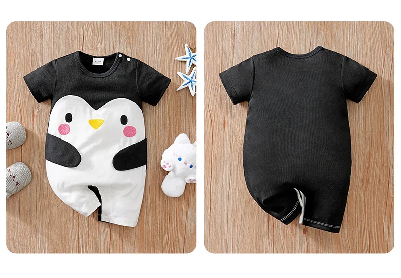 Ensemble Bébé Pingouin Été – Combinaison en Coton Doux Unisexe 0-12 Mois